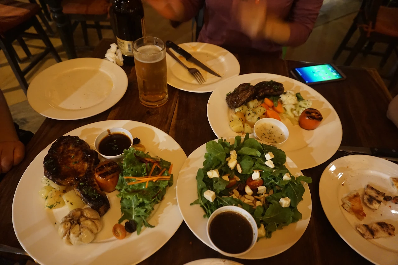 곧 해가 지고 배가 고파왔다. 우린 전날 여행사 사장님이 추천해줬던 로드 하우스 카페라는 식당을 찾아갔다. 전날 갔던 카트만두 스테이크 하우스보다 가격은 조금 비싸고, 조명과 분위기는 조금 더 고급진 곳이었다. 스테이크, 피자, 샐러드와 맥주를 주문해 배불리 먹었다. 훌륭했다.