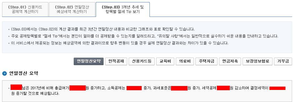 국세청이 세금을 깎아주는 사유는 아래와 같다. 다음 화면은 국세청 연말정산 미리보기 화면을 캡처한 것이다.