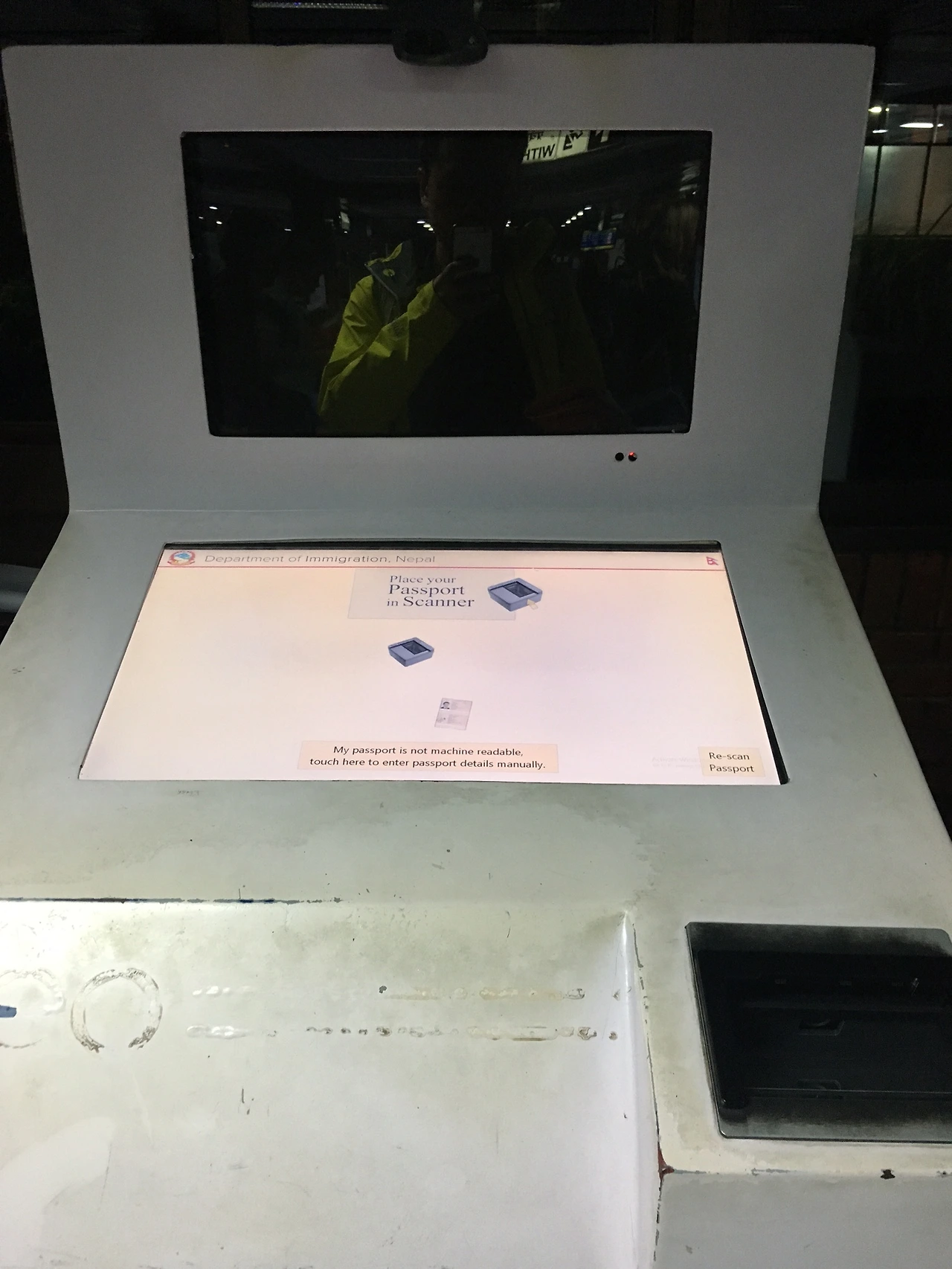 카트만두에 도착한 시간은 현지 시각 오후 11시경. 비행기에서 내려 앞 사람들을 따라 죽 걸어가니 곧 비자 신청을 위한 줄이 늘어서 있었다. 시간을 아끼기 위해 비자 신청서를 작성하고 번호표를 출력한 다음, 줄을 선 상태에서 입국 허가서를 작성했다. 한국 사람들이 이런 건 참 유난히도 부지런을 잘 떠는 것 같다. 생각보다 신속하게 수속을 마칠 수 있었다.