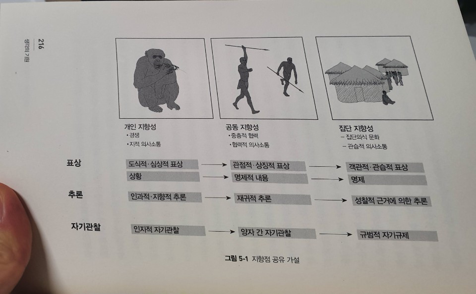 3. 현대 인류의 관습화 된 문화와 언어는 인간의 생각과 추론을 특유의 복잡한 형태로 진전시켰다. (집단 지향성 단계)