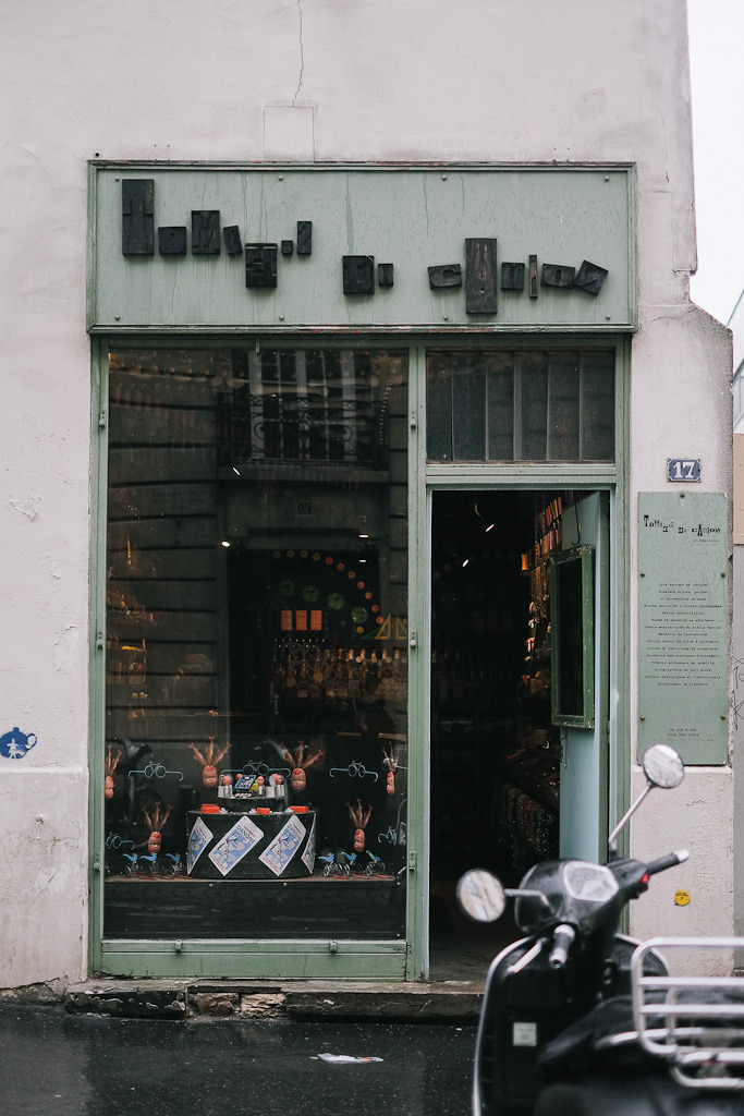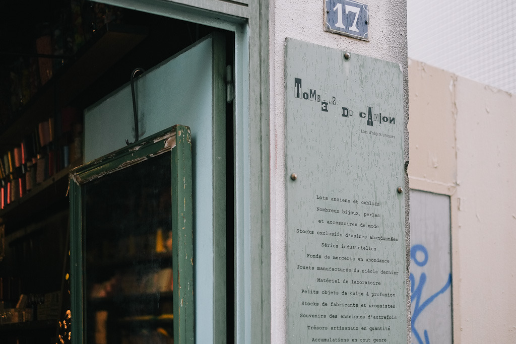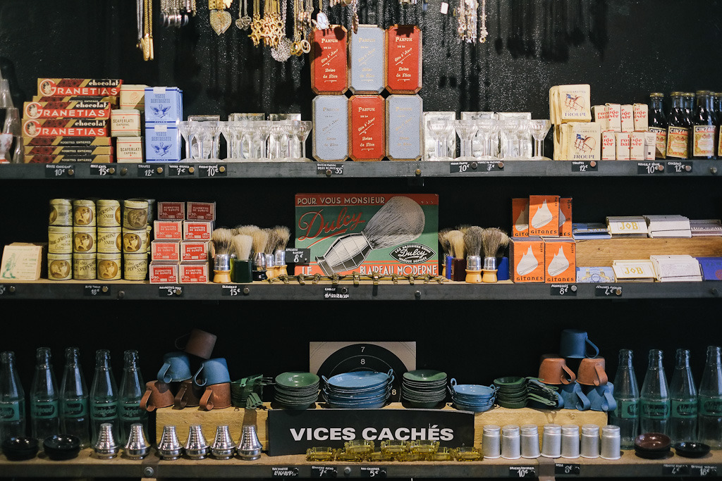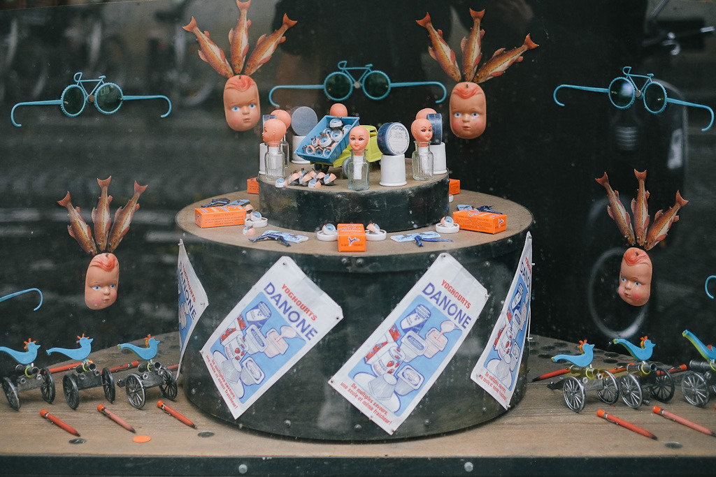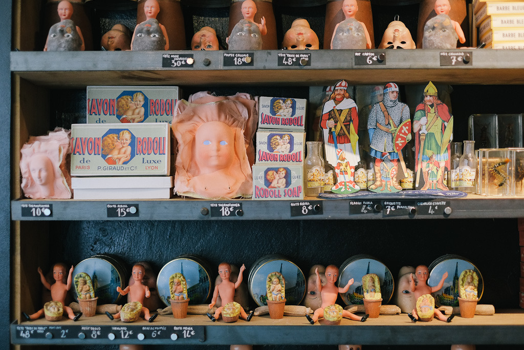 영화 <아멜리에>의 주인공인 호기심 많고 순수한 아가씨 아멜리에 Amelie. 전 세계를 행복에 감염시킨 사랑스러운 그녀. 몽마르트의 예쁜 카페와 파리 뒷골목 레스토랑이 있는 길을 거닐다 그녀는 틀림없이 조셉 드 메스트르가(街) Rue Joseph de Maistre의 녹색상점 앞에서 걸음을 멈췄을 것이다. 소처럼 큰 눈을 깜빡이고 콧김으로 유리창을 흐리며 상점 안에 전시된 옛날 마네킹, 나무로 된 구두, 실험실에서 쓰던 빈티지 유리병을 보며 어렸을 적 웃음과 추억을 발견하고는 씨익 웃어버리겠지. 이집트 왕의 고분을 발견한 사람도 지금의 그녀처럼 흥분됐을까? 상점 안에 들어서서 시적이고 유머 가득한 데커레이션을 바라보며 아마 우리들처럼 이 작은 박물관을 분석하느라 오래 서있었을 것이다.