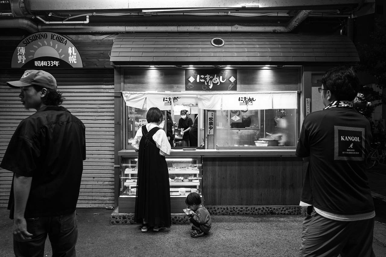 올해 3월에 한국으로 돌아온 이후 아스팔트 위에서 스쳐 지나가는 타인들과의 물리적, 감정적 거리가 점점 멀어지기 시작하면서, 그로 인해 알게 모르게 쌓였던 스트리트 포토에 대한 어색함은 삿포로에 도착한 이후부터 그 껍질들이 완전히 사라졌다. 다시 원래 그래왔듯이 마음에 드는 장면이 보이면 고민 없이 셔터를 눌렀고, 유심히 도시의 모든 것들을 관찰해 가면서 나는 인공적으로 밝혀진 빛들로 가득 찬 도시를 배회했다. 긍정적인 시선으로 카메라 렌즈를 반기는 사람들도 더러 있었지만, 그와 반대로 날 선 눈빛으로 쳐다보며 욕설처럼 들리는 강한 어투의 말을 중얼거리는 인물들 또한 여럿 마주쳤다. 숱하게 겪어서 이제는 위축이 되지 않는 레벨까지 도달했지만, 그럼에도 약간의 찝찝함이 항상 끝에 묻어 나오는 것은 어쩔 수 없는 일이다.