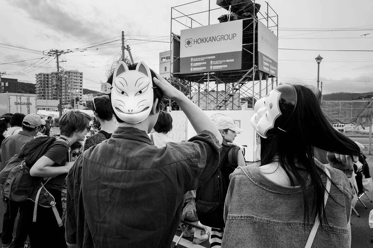 캐나다에서 잠시 지내면서도 계속 느꼈지만 나는 사진적으로 참 운이 좋은 사람이라고 생각한다. 시기를 노리고 간 것도 아니고, 더군다나 겨울철에 선호도가 조금 더 높은 지역으로 여행을 떠났음에도 잠시나마 시끌벅적하고 즐거운 여름철 거리의 축제들 또한 목격할 수 있었기 때문. 두어 시간의 비행기 연착으로 인해 오타루에서 머문 시간이 줄어들었던 게 그렇게나 아쉬울 수 없었지만, 처음 마주했던 일본에서의 색다른 분위기를 아주 조금이나마 맛보기에는 충분했다. 그룹을 인솔해 주셨던 가이드 분께는 지금도 미안한 마음이 없지 않아 있지만 예정된 루트를 따라가지 않고 내가 계획했던 장소들을 따로 빠져나와 구경하러 갔던 것 또한 결과적으로 매우 좋은 선택이었다. 다시 돌아올 수 없을지도 모르는 이 작은 동네에서 나는 관광적인 요소보다는 일상적인 모습들이 묻은 것들을 보고 싶었고, 주민들이 모이는 어시장과 지하철역, 자그마한 골목들, 그리고 전통적인 색이 짙게 입혀진 행사장 주변을 홀로 돌아보며 1시간 남짓 시간을 보냈다.