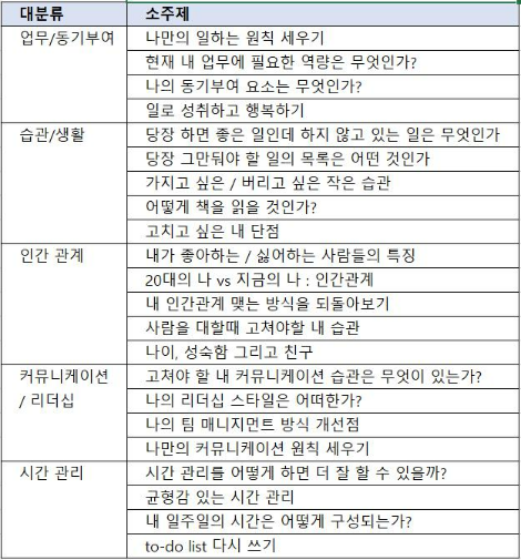가장 많이 시간을 쏟았던 것은 아무래도 스스로를 돌아보는 글을 작성해본 것이다. 아래 리스트는 최근 4~5년 사이에 스스로를 더 잘 알기 위해 작성해보았던 글의 리스트이다. 어떤 글은 꽤나 심도 있게 써본 것들도 있고, 어떤 글은 가볍게 10줄 내외로 개요만 작성해본 것도 있지만, 나를 더 잘 이해하고 돌아보고 좀 더 나은 내가 되고자 하는 마음에 이렇게 저렇게 고민을 해보았던 것들이다.