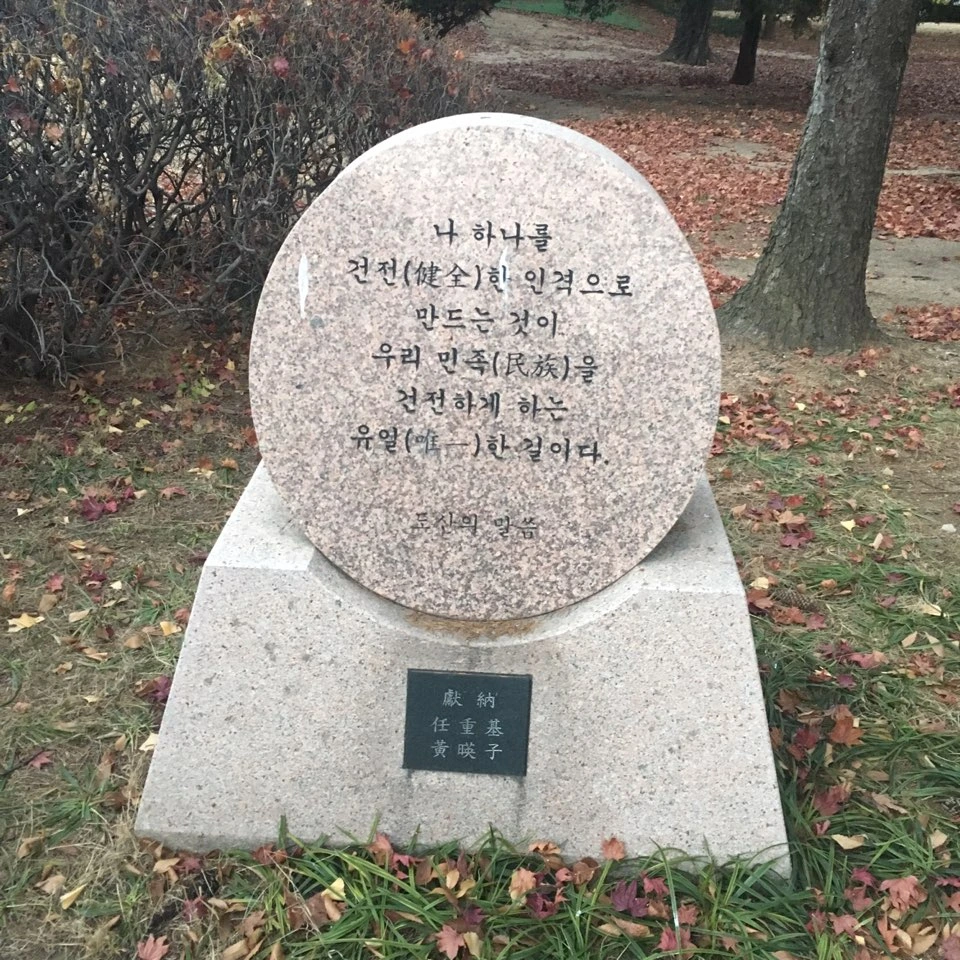 공원 곳곳에서 선생의 말씀을 새긴 말씀 비들을 발견할 수 있다.