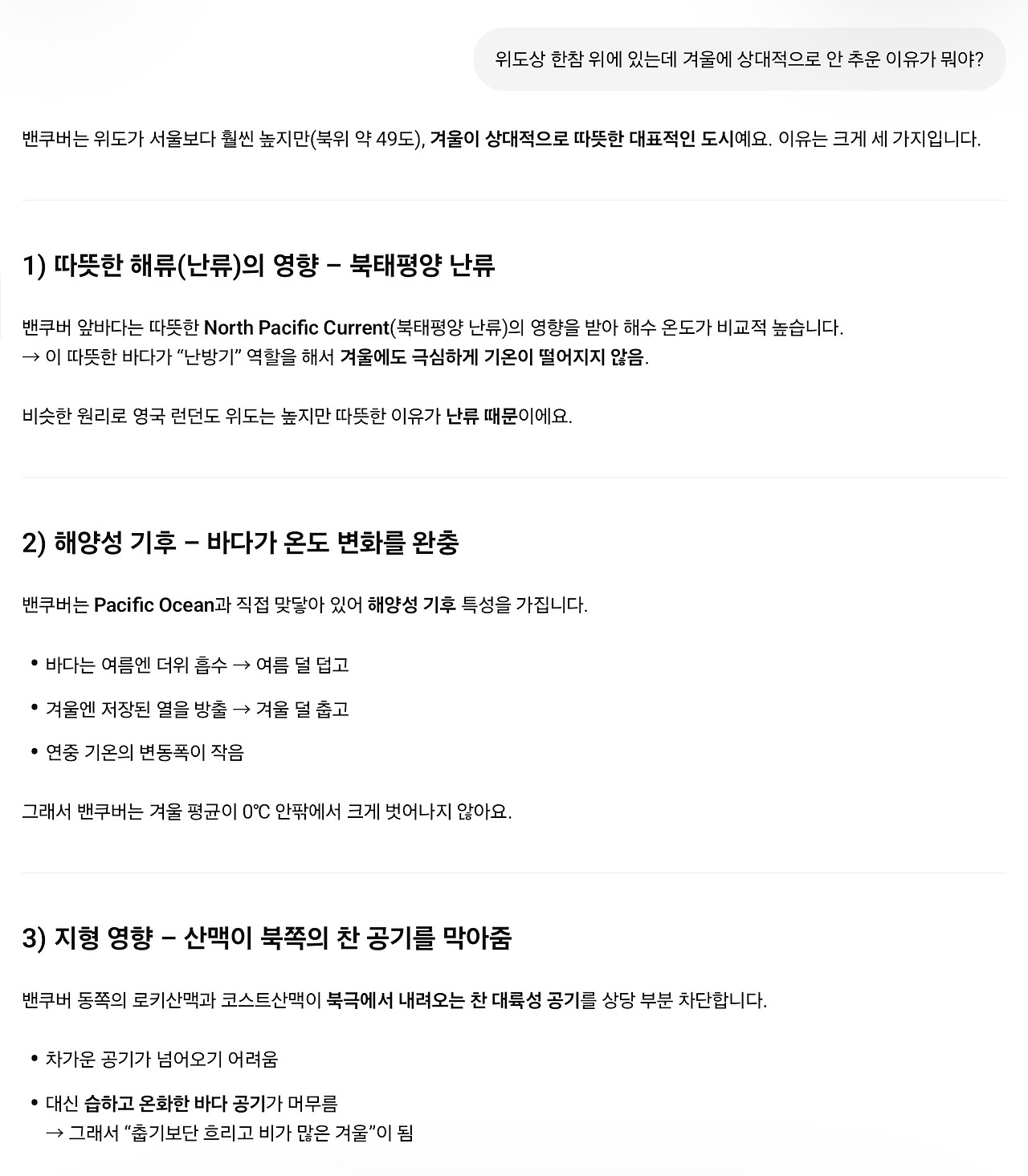 GPT가 추워서 얼었나. 이게 맞는 정보인지 의아했다. 분명 위도상으로 우리나라보다 한참 위에 있는데 이상하다. 다시 물었다.