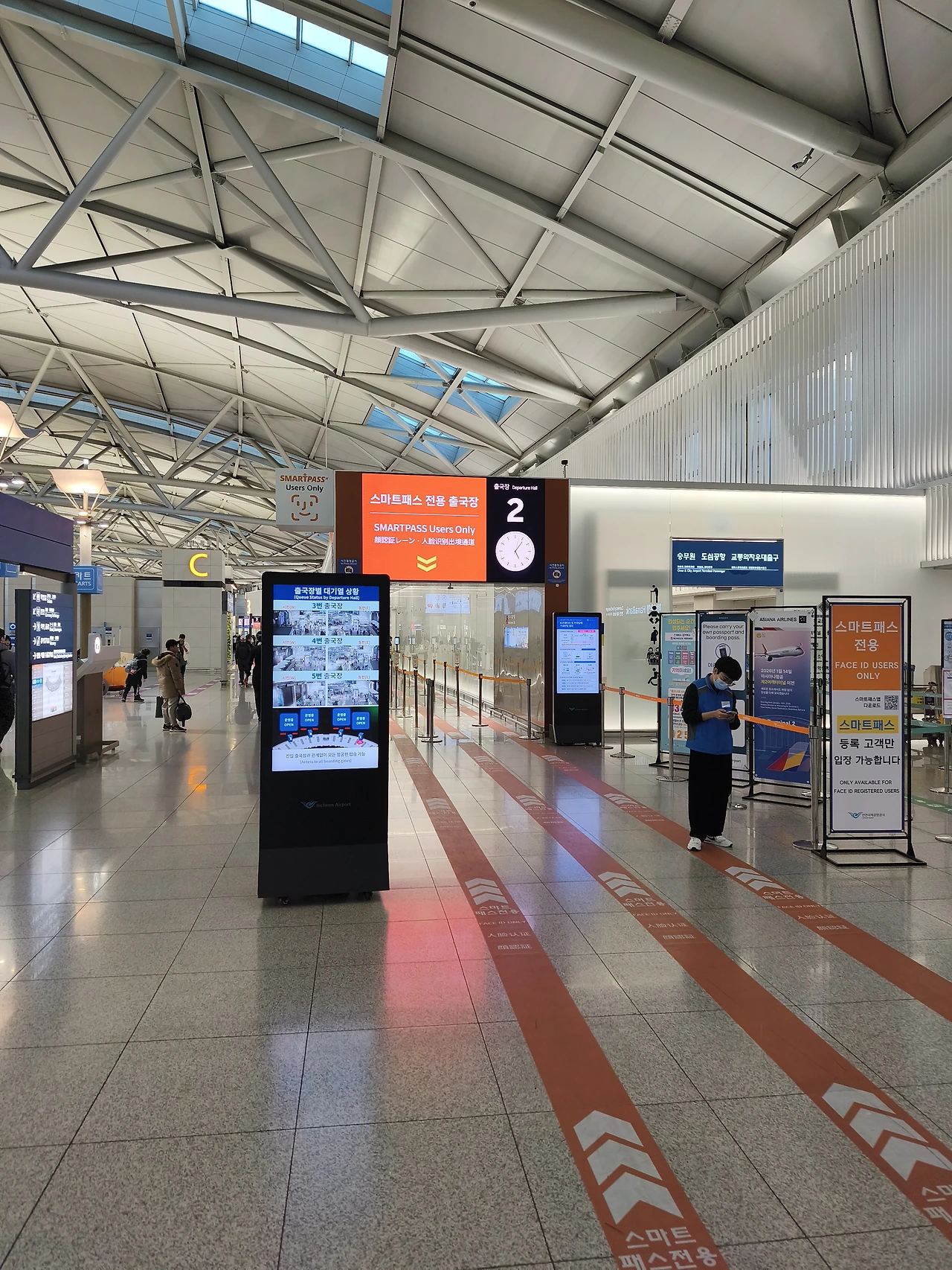 안으로 들어가니 긴 줄 한쪽에 스마트패스 전용 보안검색대가 또 따로 있다. 아무도 없어서 짐 검사도 바로 통과. 고속도로 하이패스가 처음 나왔을 때 경험하던 느낌으로 순식간에 출국장까지 들어왔다.
