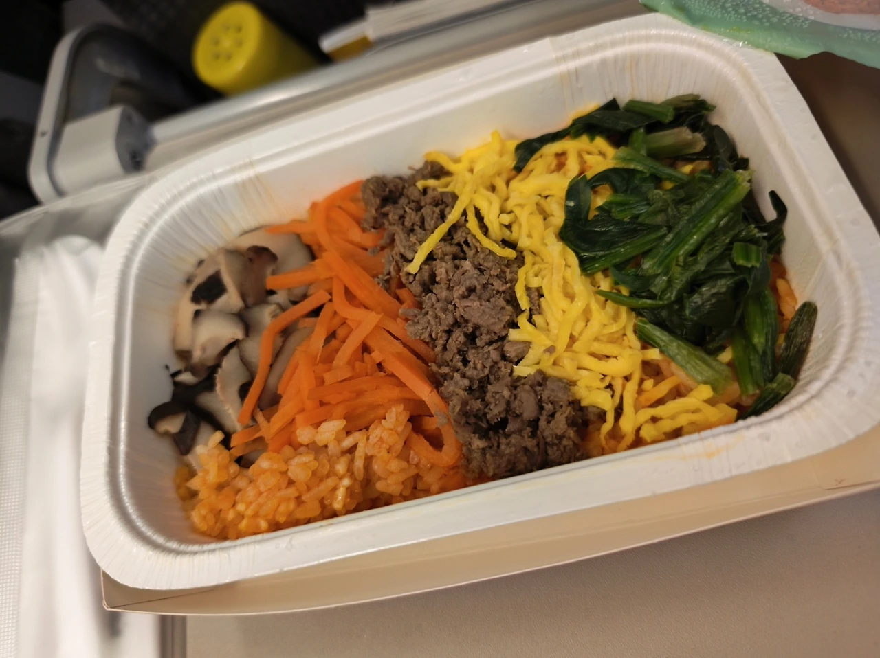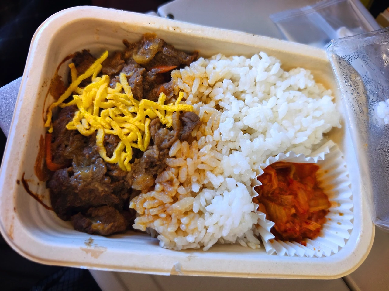 두 번째 기내식이 나왔다. 라구파스타와 불고기덮밥. 이번에도 실패다. 파스타 소스가 살짝 매웠고, 불고기도 아이가 씹기에는 조금 질긴 감이 있었다. 또 나만 잘 먹었다.