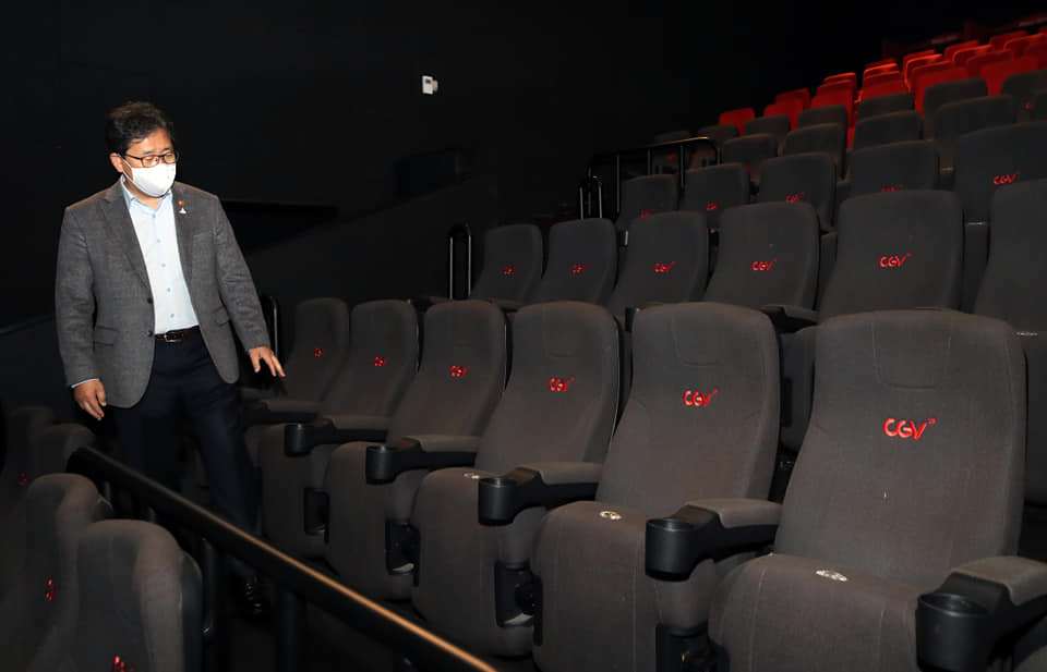 특별대담이 끝나고 세종시 영화관 찾아 방역 점검한 박양우 장관. 사진=문체부