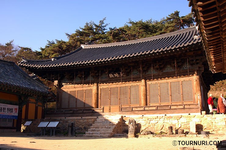 안동은 경상북도에서도 내륙도시 중 하나이다. 안동시 북서쪽에 자리답고 있는 서후면 태장리는 시내버스로 한 시간 정도 떨어진 거리이고 구 안동 고속버스터미널 건너편에서 시내버스를 타고 봉정사 매표소까지 찾아간다. 다른 불교 사찰들이 다 그러하겠지만 봉정사도 매표소에서 10여분의 산길을 걸어 들어가야 한다. 고찰의 향기를 물씬 풍기는 듯한 소나무 숲을 지나 몇 분 걷다 보면 오랜 세월 속에 특별한 용도로 사용되었을 법한 산속에 넓은 공터가 하나 나타나고 이 공터를 지나 오른쪽 언덕 위로 시선 옮기면 봉정사 만세루의 모습이 들어오기 시작한다. 시선을 따라 오른편으로 발길을 옮기다 보면 만세루 옆으로 봉정사 본당에 오르게 되고 처음 눈에 들어오는 전각이 봉정사 대웅전이다.
