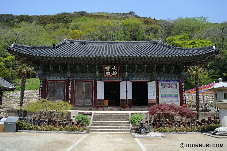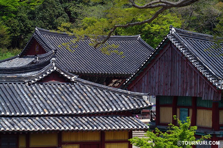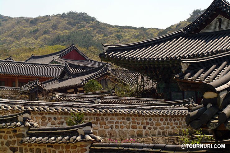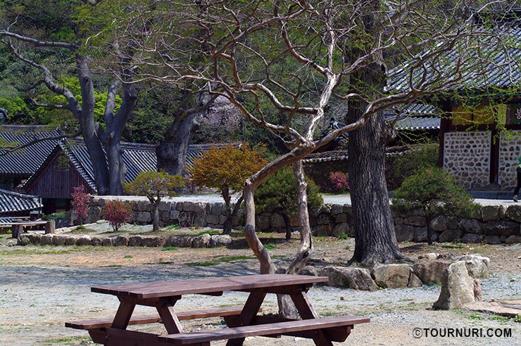 경내에서 대웅보전을 가기 위해서는 언덕길을 내려와 개울을 건너편으로 가야 하는데 개울을 끼고 양쪽에 전각들이 나누어 자리 잡고 있는 형국이다. 왜 이런 가람배치를 택했을까 고민을 하다가 개울을 건너 대웅보전 계단에 올라보면 기가 막히게도 시선을 두는 곳마다 편안한 느낌이 들어 전혀 거슬것이 없는 자리가 분명해 보였다. 그 오랜 세월 동안 한자리를 지킨 사찰의 절묘한 풍수는 결국 다 이유가 있는 것이구나 하는 생각을 다시 한번 해본다.
