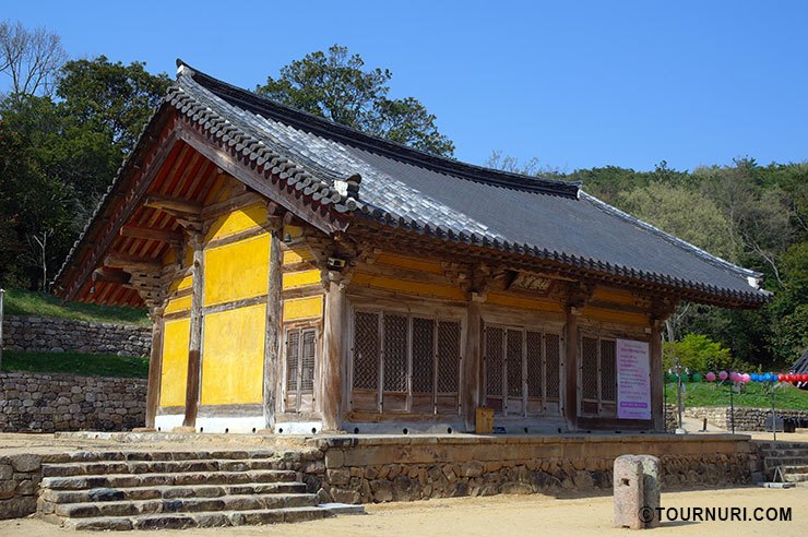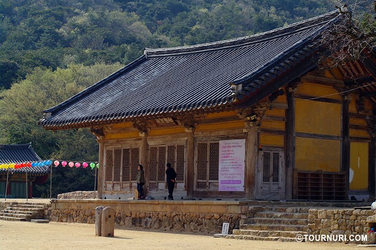 일주문과 해탈문을 지나고 그리 경사가 가파르지 않은 계단 몇 개를 걸어 오르다 보면 정면으로 국보 제13호 무위사 극락전이 나타난다. 마치 수덕사 대웅전을 축소해 놓은 것 같은 정면 3칸, 측명3칸의 주심포계 공포와 맞배지붕을 한 단층 처마 목조건물이 무사위 본전 건물이다. 이 목조건축물이 무위사를 찾은 목적이다. 그렇기에 먼발치에서 조심스럽게 이리 보고 조리보고 유심히 살펴보았다. 수덕사 대웅전처럼 웅장하지는 않지만 어디도 더할 것 없고 뺄 것도 없는 완전한 하나의 예술작품 자체였다.