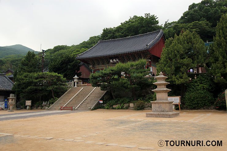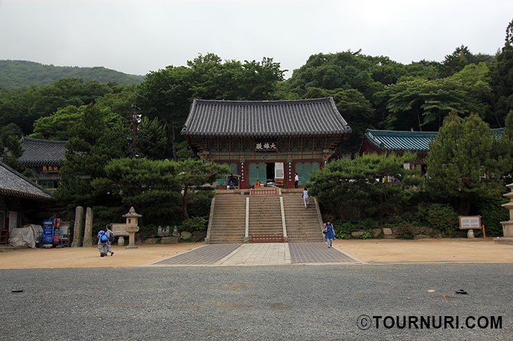 조계문을 지나 계단으로 이어진 사천왕문을 으르면 경내인데 정면에 대웅전 마당이 나타나고 이 마당을 지나 대웅전 앞까지는 다시 계단으로 이어진다. 대웅전 앞마당을 지나 계단을 오르면 보물 제434호로 지정된 조선 중기 전형적인 목조건축물인 범어사 대웅전 앞에 서게 된다. 주요 동선이 경사면을 따라 쭉 계단으로 이어져 있는데 대웅전 앞에 서면 아주 시원한 풍광이 펼쳐진다. 이 절집의 풍채를 한눈에 느끼기에 아주 충분한 풍경이다.