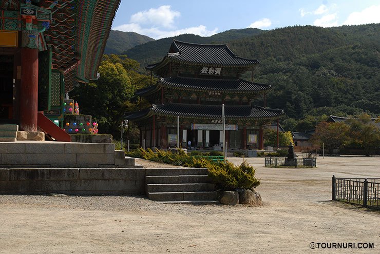 우리나라 사찰의 가람배치라는게 한 가지도 동일한 것이 없지만 금산사의 입지는 일반적인 절집의 위치와 비슷하지만 가람배치는 미륵사상에 기반하고 조성된 사찰이라 흔히 볼 수 있는 구조이다. 금강문 천황문을 지나 보제루를 거치면 너른 구릉지의 경내에 풍광이 한눈에 들어오는데 오른편으로는 미륵전과 방등계단이 들어오고 정면에는 최근에 지어진 대적광전이 위치하고 있다. 주 전각인 미륵전의 위치와 방등계단의 위치가 오른쪽에 치우쳐 있어 얼핏 불균형을 이루고 있는 듯 하지만 방등계단을 올라 바라보면 왜 이런 구조로 전각을 배치했는지 금방 이해할 수 있다.