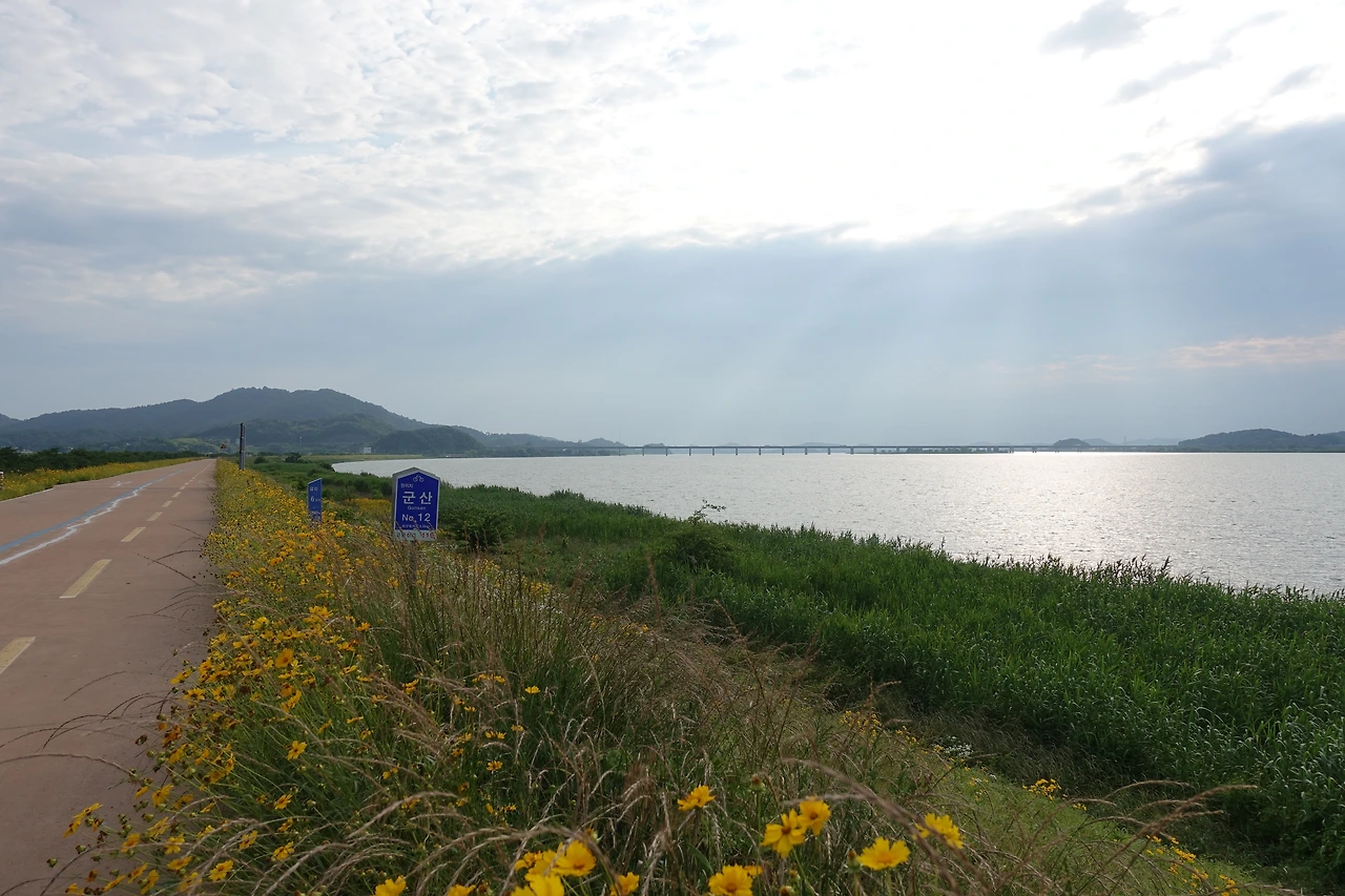 지난 1월 연산부터 군산까지 걸었던 그 길을 자전거를 타고 달렸다. 5월처럼 금계국이 여전히 반겨주었다.