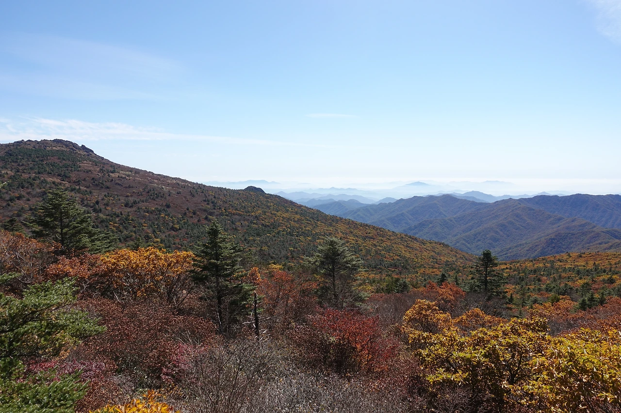 세석평전은 평화로웠다. 막 물이 드는 나무들은 산을 알록달록 만들었고 그 위로 평온하게 드리우는 가을 햇살은 비타민 D를 가득 머금은 듯 따뜻하니 영양이 가득했다. 장터목까지 가는 능선도 기대가 되었다. 단풍 같은 건 나이 든 어르신들이나 즐기는 건 줄 알았는데 벌써 그 나이가 된 건지 변화로 조화로운 산 빛깔이 좋았다.