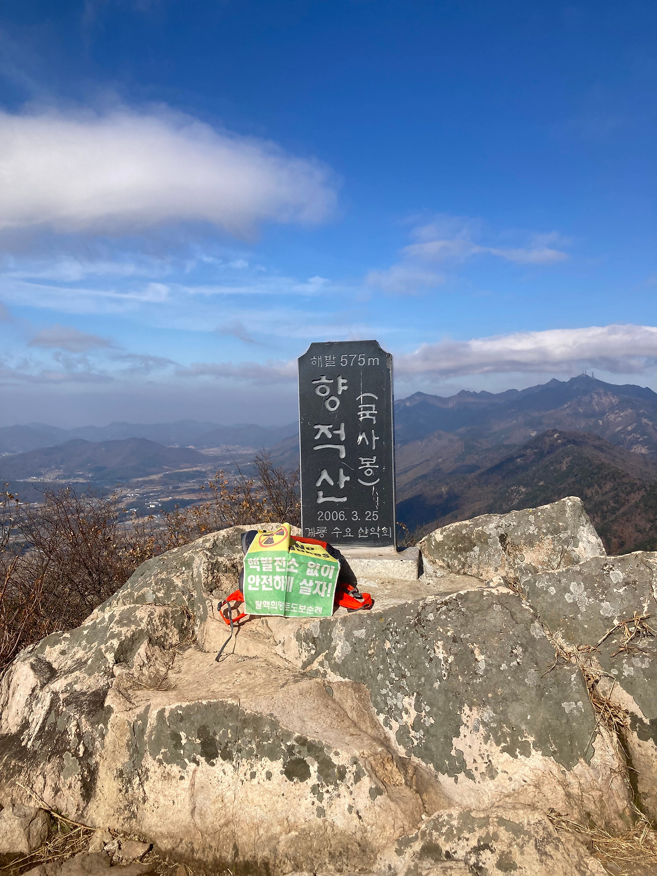 지리산 종주 이후로 다시는 산에 오르지 못할 줄 알았다. 그런데 자신을 시험해 보고 싶었다. 내가 그렇게 민폐 끼치는 인간인지 확인해 보고 싶었다. 낙엽으로 뒤덮인 산에 길은 보이지 않았지만, 능선을 향해 기어 올라갔다. 능선에 오르자 향국암으로 가는 이정표가 보였다. 오솔길을 따라가니 산길이 끝나고 임도가 나왔다.