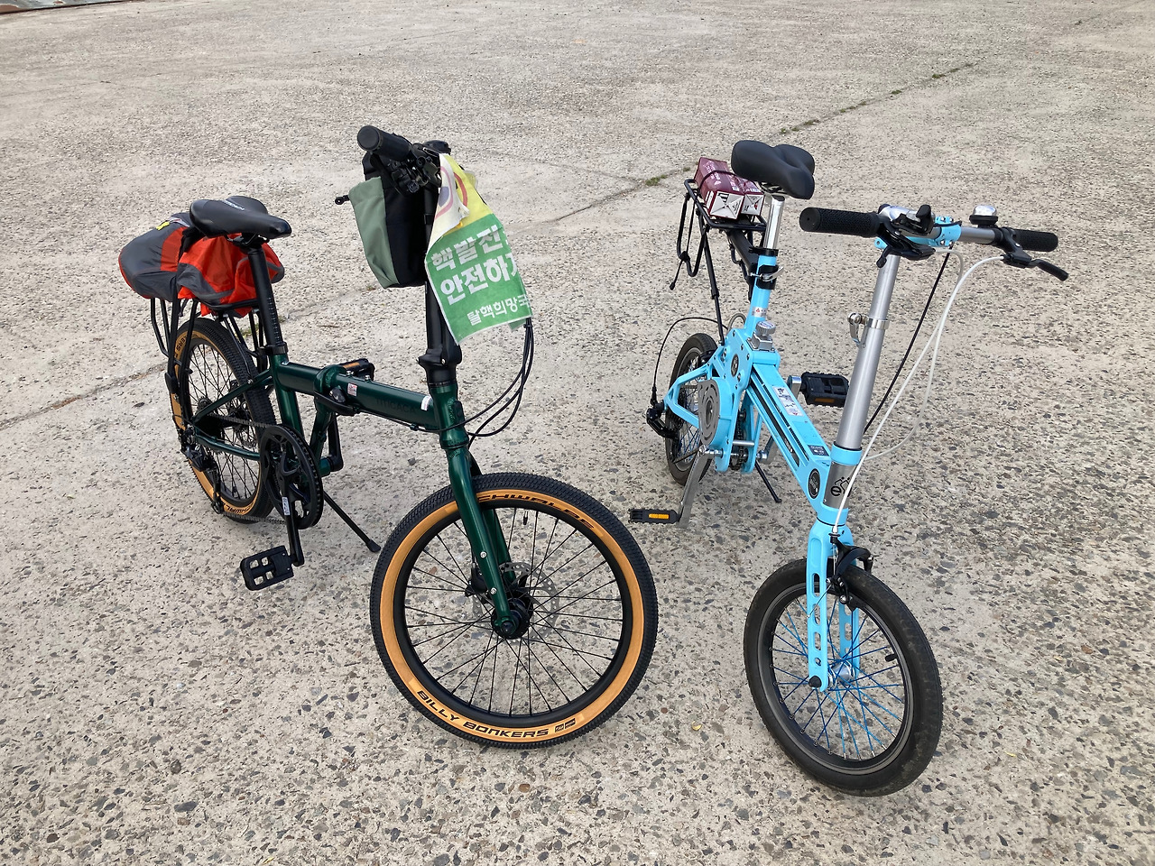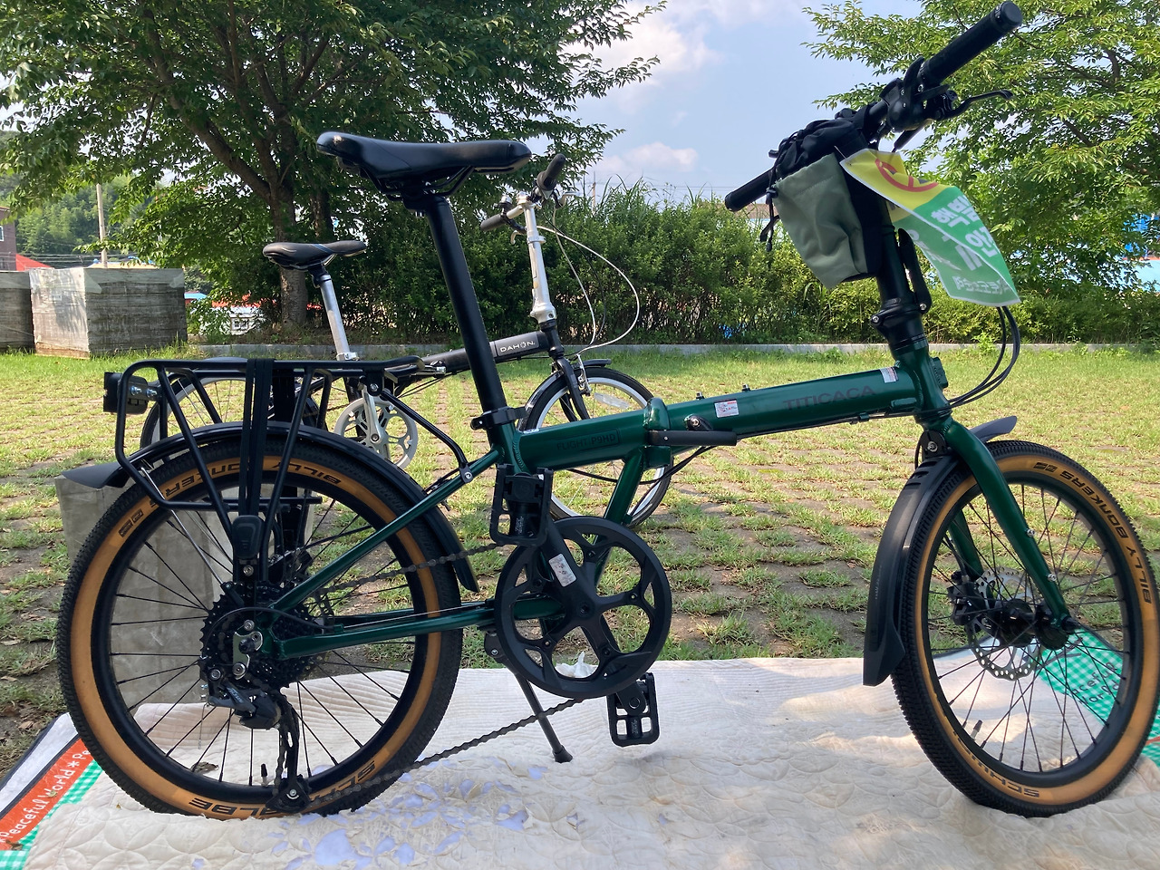 그리고 사흘 후, 서울과 대전의 BROMPTON 매장을 다녀본 내가 산 건 브롬톤 비슷한 국산 접이식 TITICACA FLIGHT P9 HD 초록색 몸통에 노란 SCHWALBE BILLY BONKERS 타이어 자전거.