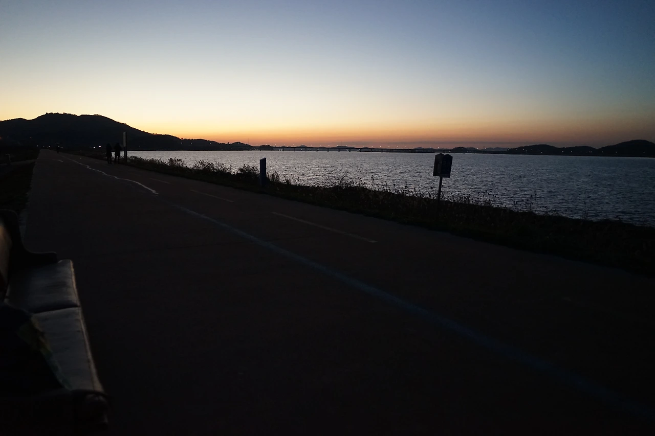 목표였던 공주보까진 턱도 없어 한 시간 만에 중간에서 돌아와야 했다. 돌아오는 길에 함께 흐르던 금강은 멋들어진 낙조를 선사했다. 멀리 가지 못하면 어떠한가. 목표를 달성하지 못하면 또 어떠한가. 함께 달리고 함께 쉬고 함께 물 마실 수 있는 사람이 있는데.