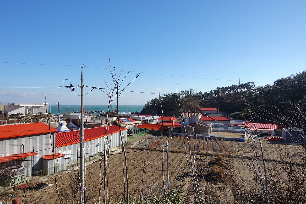 다시 길 건너 조금 가다 정류장 의자에 앉았다. 맞은편에 건설 중인 아파트가 보였다. 다시 온다면 바다뷰 아파트가 다 지어져 있겠지. 적어도 바다와 건물 사이에 길이라도 두는 건 양심 있는 행위이다. 바닷가 절벽에 지어 길에 다니는 사람이 못 보게 풍경을 독점하는 건축 행위는 법적으로 허가를 내주지 말아야 한다.