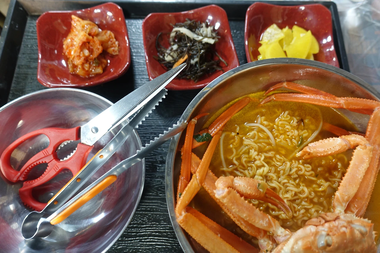 여자 혼자인 것도, 한파인 것도, 손님 없는 가게에서 혼자 먹는 것도 모두 질문을 유도할 만하다. 여행이든 순례든 만 천 원짜리 라면을 다 먹어보다니. 하지만 항구에서 홍게 한 마리 먹어보는 것도 좋았다. 라면이 홍게를 만나 호강하네.