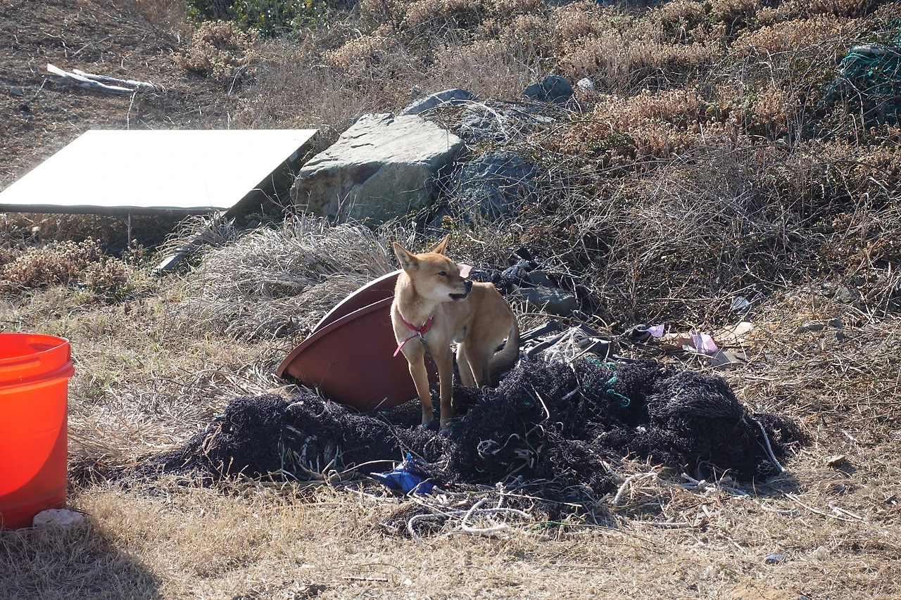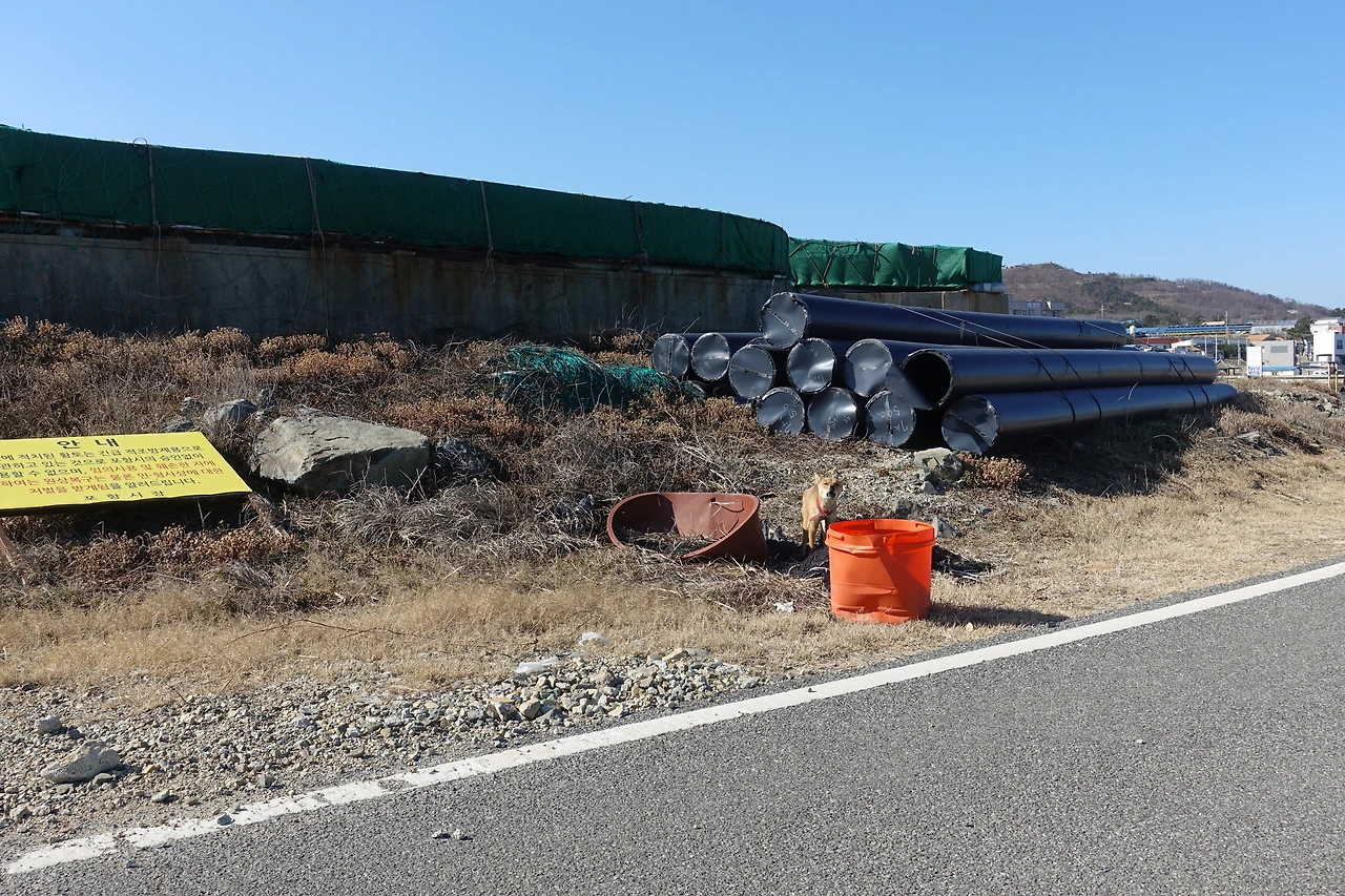 그 추운 바닷가에서 황토색 개 한 마리가 짖었다. 인사하고 지나가는데도 계속 짖는다. 가다 말고 멈췄다. 가까이 가보려 했더니 더 짖는다. 꼬리를 아래로 착 감은 게 겁을 먹은 듯 보였다. 배도 고프고 목도 마를 것 같았다. 배낭에 먹을 건 과자와 귤뿐. 당분 많은 과자는 개에게 좋지 않지만 개 간식을 갖고 다니진 않으니까. 마지막 과자 버터와플과 귤 한 개를 먹기 좋게 까서 던져 주었다. 역시 먹었다. 굶주리고 있던 게 틀림없다. 목줄이 그물에 얽힌 듯했다. 하지만 내가 풀어 줄 순 없었다. 얼굴이 참 잘생긴 개였다. 내가 넓은 정원에서 살면 데려다 키우고 싶다는 생각이 설핏 들었다. 하지만 그 개 주인이 있기를. 버린 게 아니길. 그래서 데려가기를 간절히 바랐다.