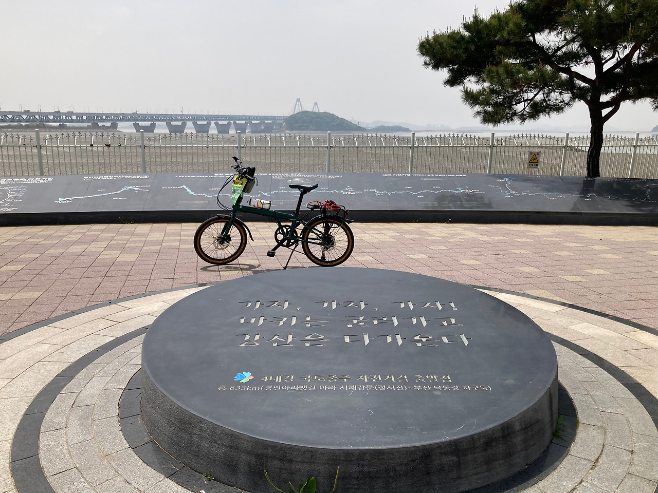 생각해 본 적도 없는 국토종주 표지석이 뭉근히 유혹했다. 하지만 지금은 하룻길도 헤매지나 않으면 다행이다. 영산강 승촌보에서 본 글씨가 이곳에도 있다.