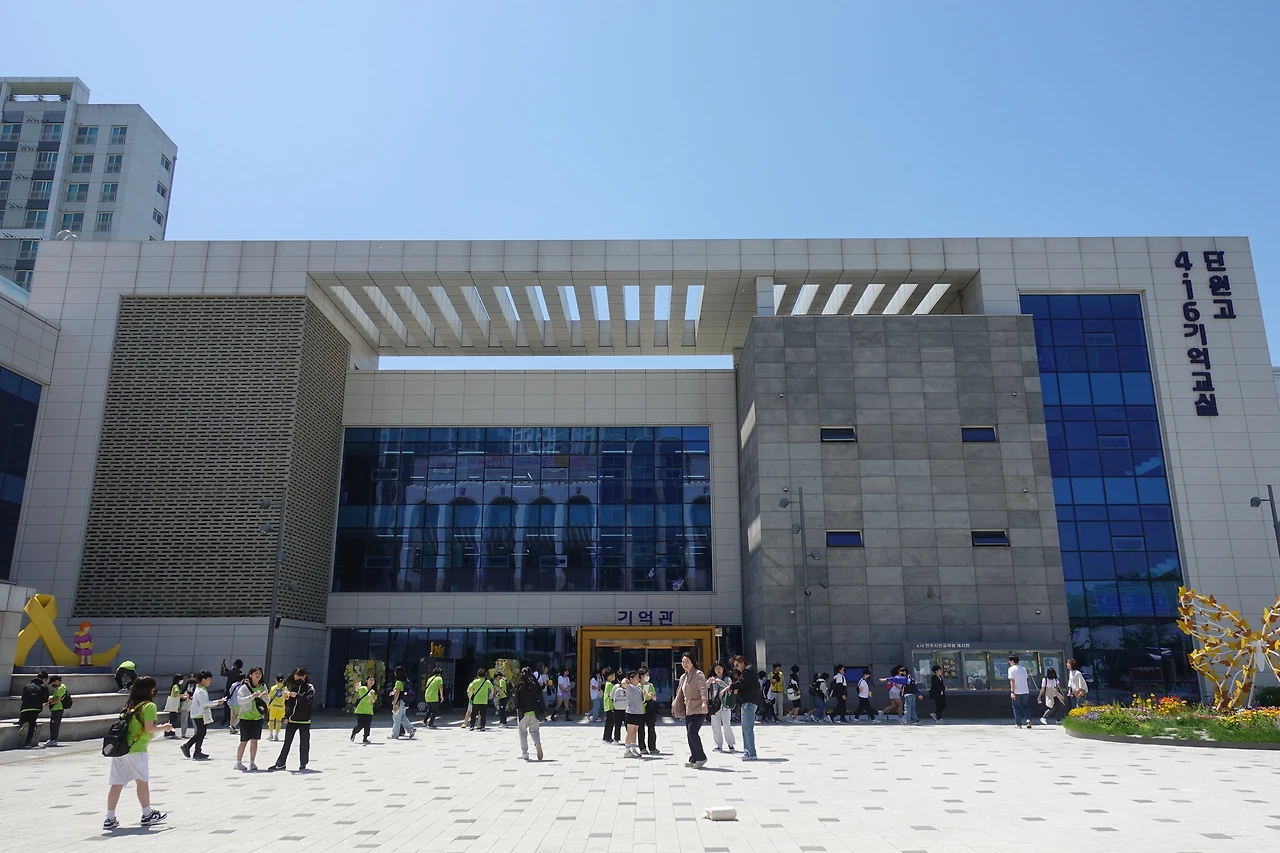 경기도 안산시 단원구 적금로 134. 4.16 민주시민교육원 맞은편에 4.16 기억저장소인 단원고 4.16 기억교실을 찾았습니다. 기억관 앞에는 마침 견학 온 어린 학생들이 가득했습니다.