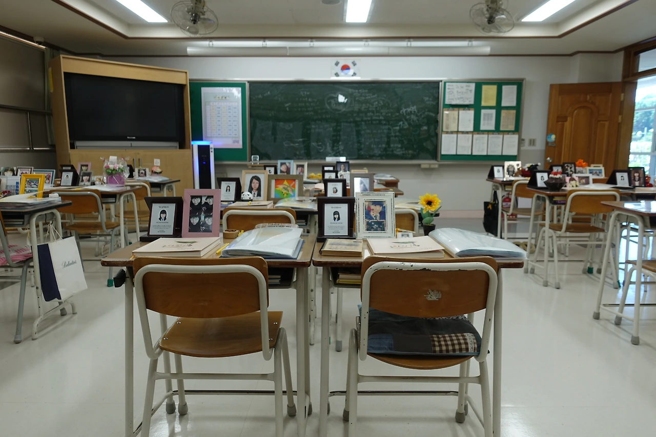 위층에는 10년 전 아이들의 교실이 그대로 재현돼 있었습니다. 그곳에는 10년 전에 멈춘 시간이 고정돼 있었습니다. 아이들의 역사가 국가지정기록물로 보존돼 있어 얼마나 다행인지 모릅니다.