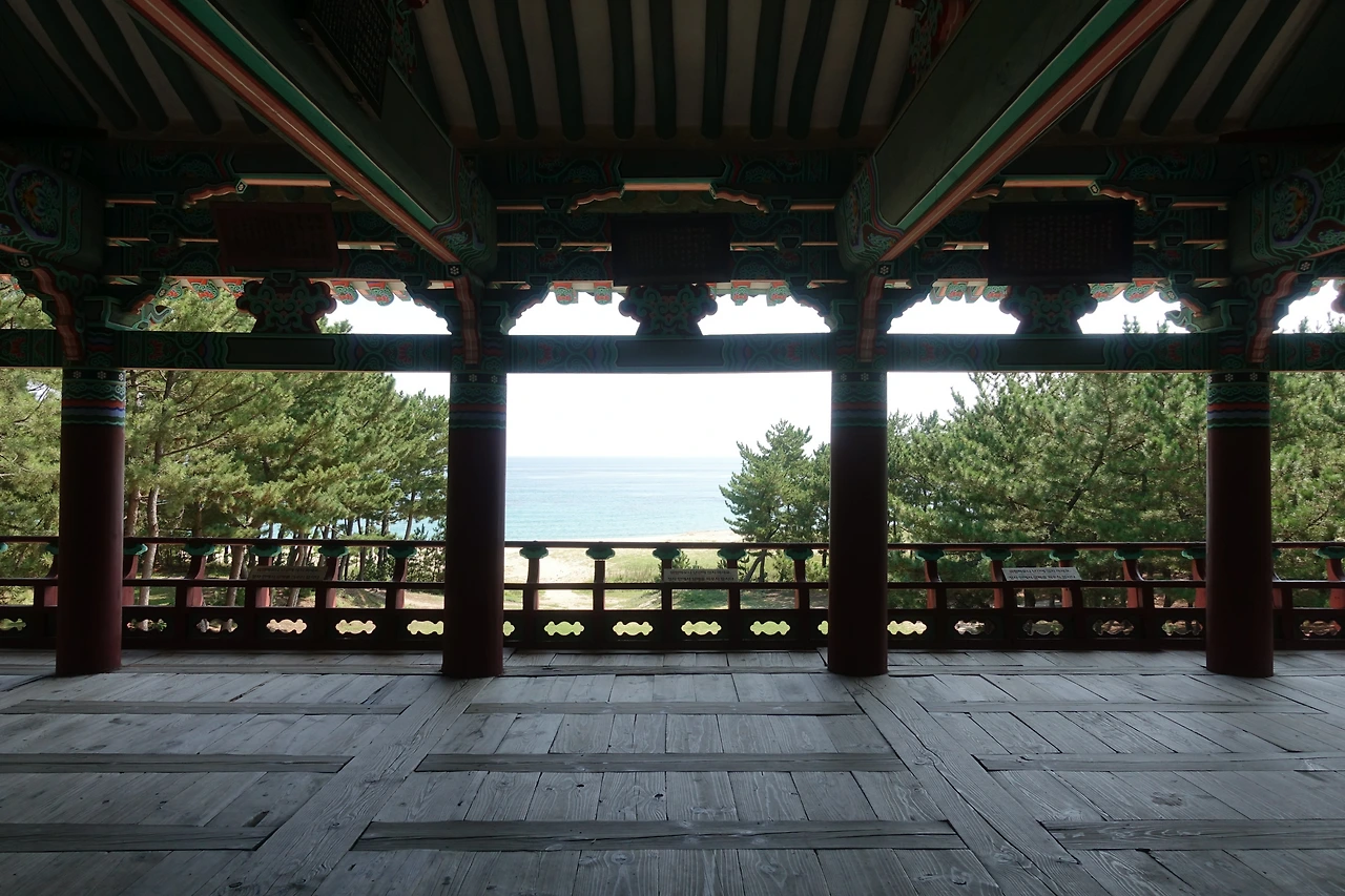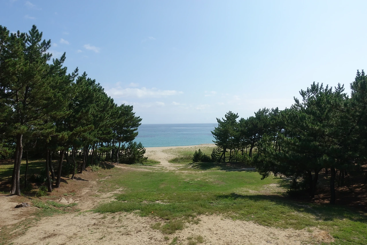 10:30 월송정 인증센터에 도착했다. 친구들과 함께 걸을 때 비가 왔었다. 그래서 진짜 월송정에 가보지 않았었다. 이번엔 혼자 들어가 보았다. 만 그루 가량의 소나무가 있다는 그곳 깊은 지점에 바다가 보이는 정자가 있었다. 관동팔경 중 하나인 월송정 위에는 난간에 앉지 말라고 쓰여있었다. 이번에 가져간 방석을 꺼내 처음으로 사용해 보았다. 달이 떠있을 때 와보면 어떨까 싶었다. 하지만 혼자서 밤에 올 순 없으니.......