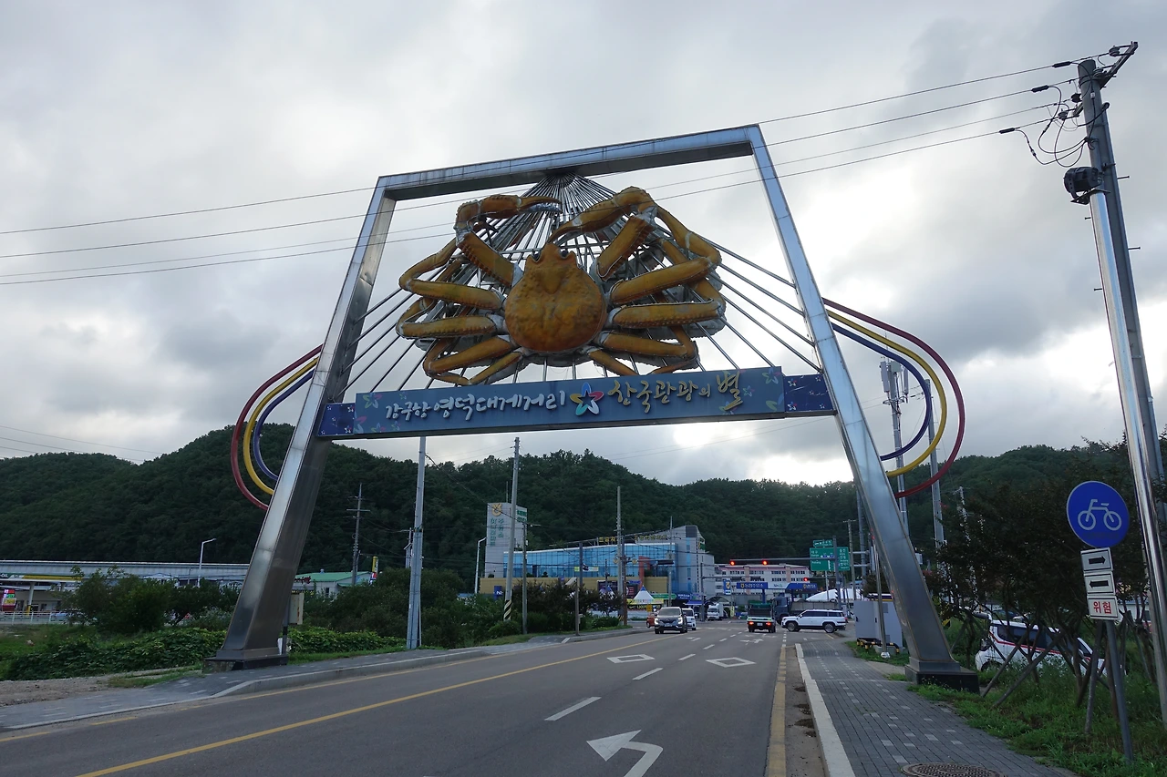 16:55 강구항 영덕 대게거리가 나왔다. 다시를 건너 방향을 좌로 트니 강구버스터미널이 나타났다.