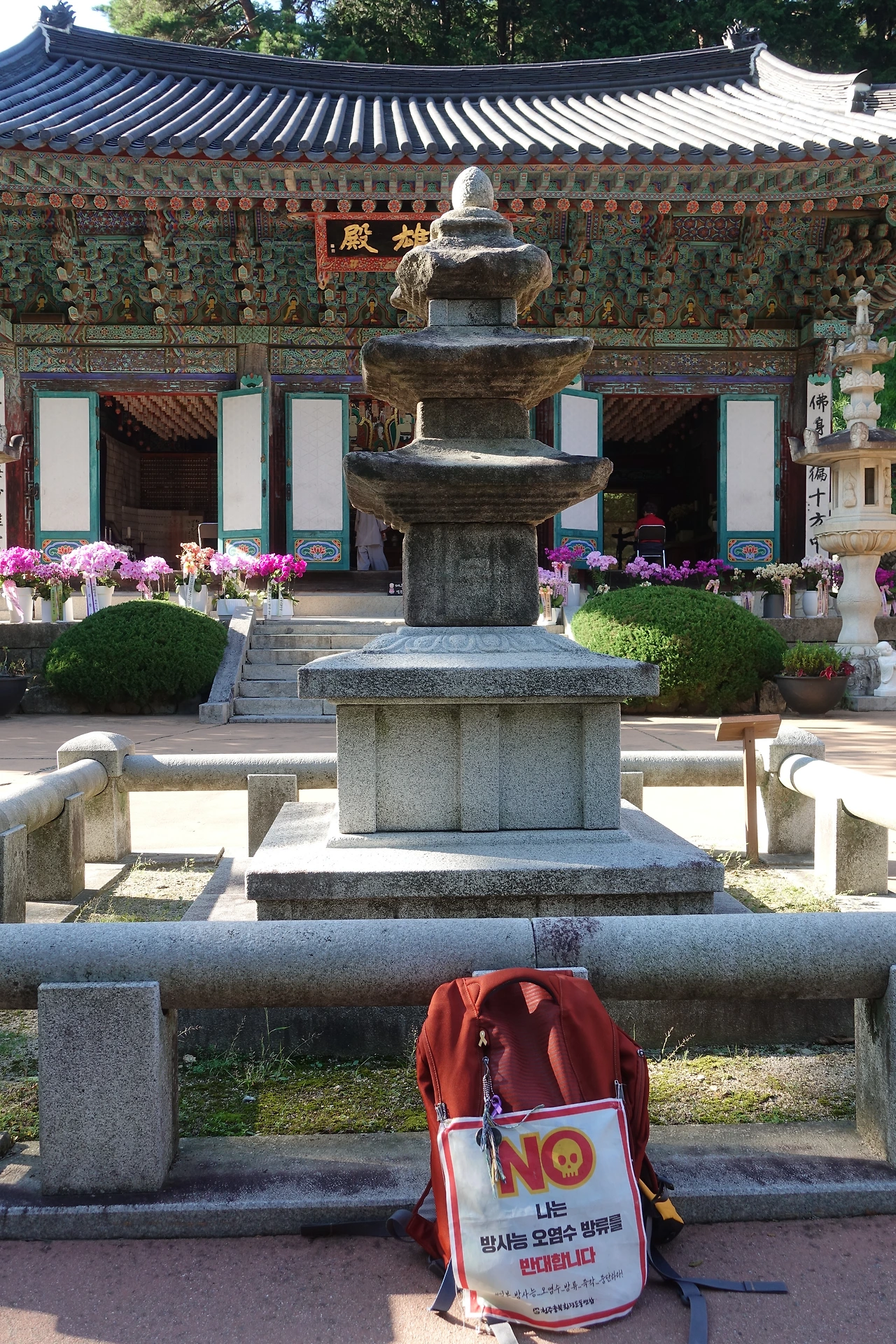 그런데 완만하리라 생각했던 남매탑 쪽도 만만치 않았다. 몸이 천근만근 쳐지기 시작하더니 뒤에 오던 이다가 앞질러가기 시작했다. 아파트 계단 오르기 운동을 한다더니 남원 만행산 때와는 다르게 건강해진 이다는 내가 작년에 만들어서 이번에 준 '두 번째 지구는 없다' 앞치마를 입고 있었다.