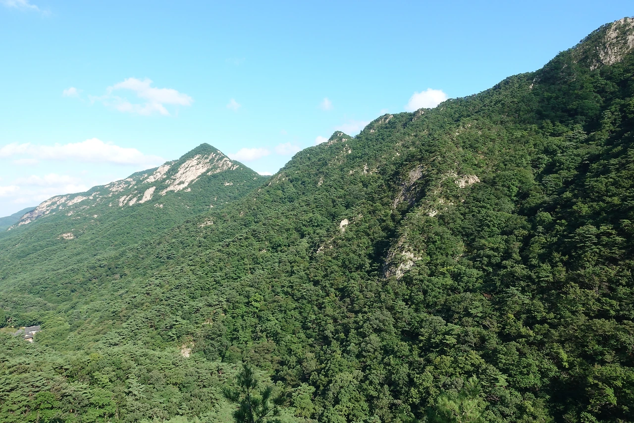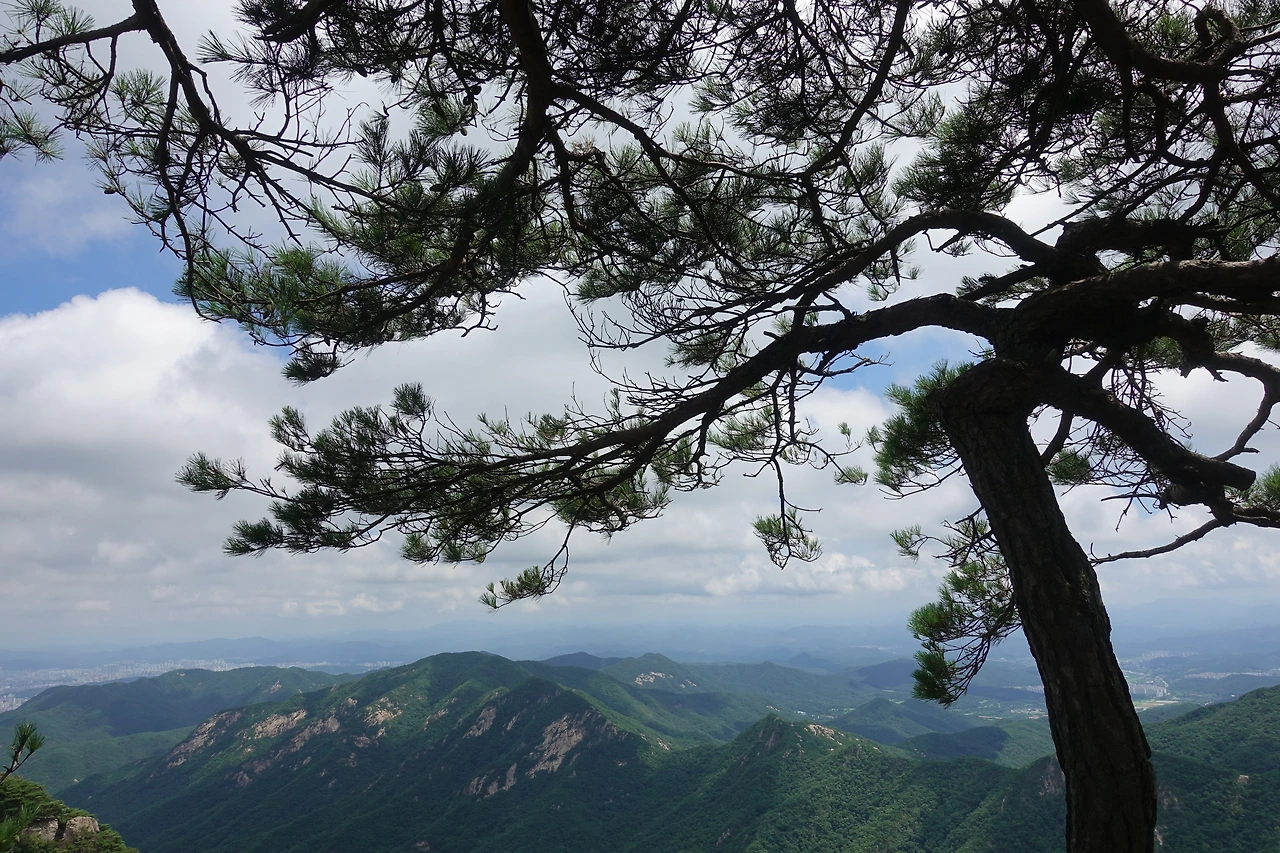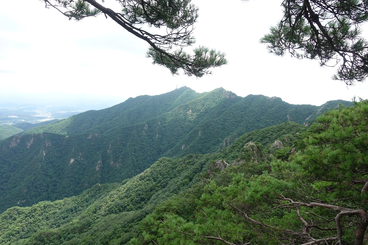 눈 아래 굽이굽이 칠월 말의 여름 계룡산이 펼쳐져있었다.