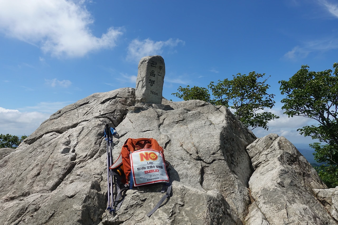 까마득한 계단을 오르고 내려가니 766m 관음봉이 나왔다.