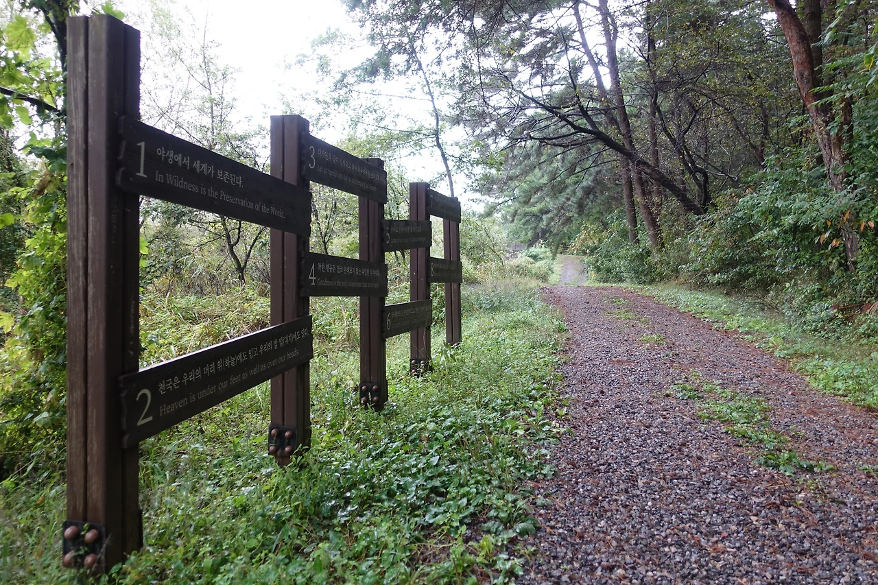 두 시간 반을 걸어 운동화와 양말이 다 젖고 나서야