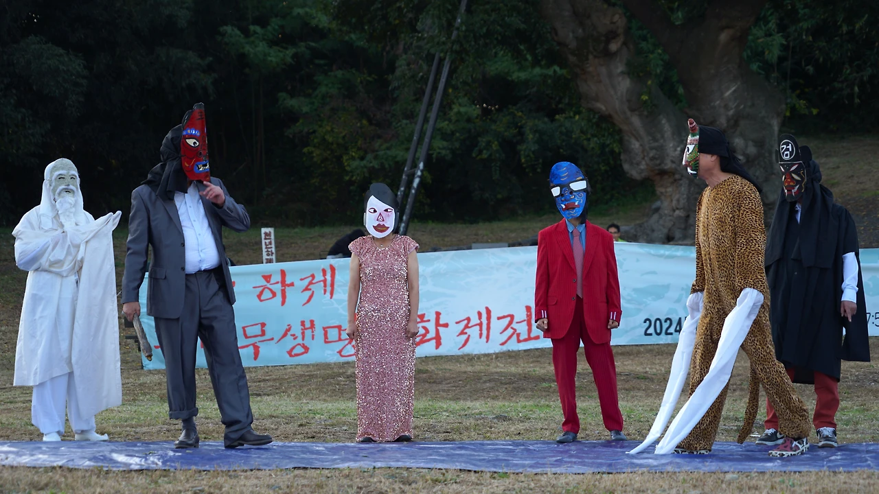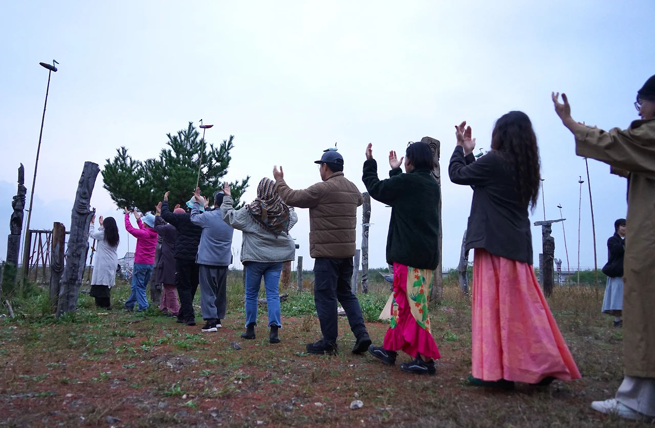 마지막으로 모두가 넬켄라인 댄스‘서식지를 위한 춤’을 추며 장승 사이를 돌고 돌았다. 들판에 작은 씨앗이 떨어져 키 큰 들판에서 햇빛 받고 자라서 낙엽이 되어 떨어지고 꽁꽁 어는 사계절의 춤. 기후위기로 사계절이 두 계절로 바뀌어 가고 있는 21세기의 북반구 한반도 서해안에서 느린 음악에 맞춘 생명 기원의 춤이 땅으로 변한 갯벌 위에서 일몰과 함께 펼쳐지며 둘째 날 살살 페스티발을 마쳤다.