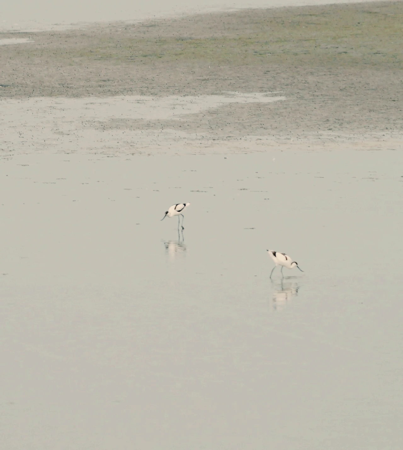 짙은 고동색 뻘은 밀도가 높아 발이 빠지지 않았고 바닷물은 찰박찰박 발등에 걸렸다. 한참을 걷다 보니 얕은 바닷물 아래 새 발자국이 찍혀 있었다. 새 발자국 옆에 내 발을 놓아보았다.