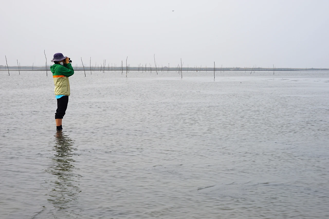 갯벌에서 올라오니 맞은편 방조제 쪽으로 오동필 새만금시민생태조사단장이 망원경을 대어놓고 있었다. 뒷다리장다리물떼새를 포착했다고 했다. 뷰파인더를 통해 눈앞으로 다가온 장다리물떼새는 부리가 살짝 위로 들린 듯 까맣고 길었다. 긴 다리에 긴 부리로 얕은 물에서 뭔가를 나붓나붓 잡아먹고 있었다. 선이 고혹적인 새의 매력에 빠져드는 찰나였다. 찾아보니 장다리물떼새는 4월 중순부터 9월 하순까지 관찰되는 여름 철새인데, 10월 말까지 새만금에 있다니 기후 온난화 현장을 보는 듯했다.