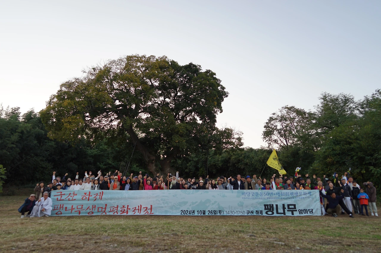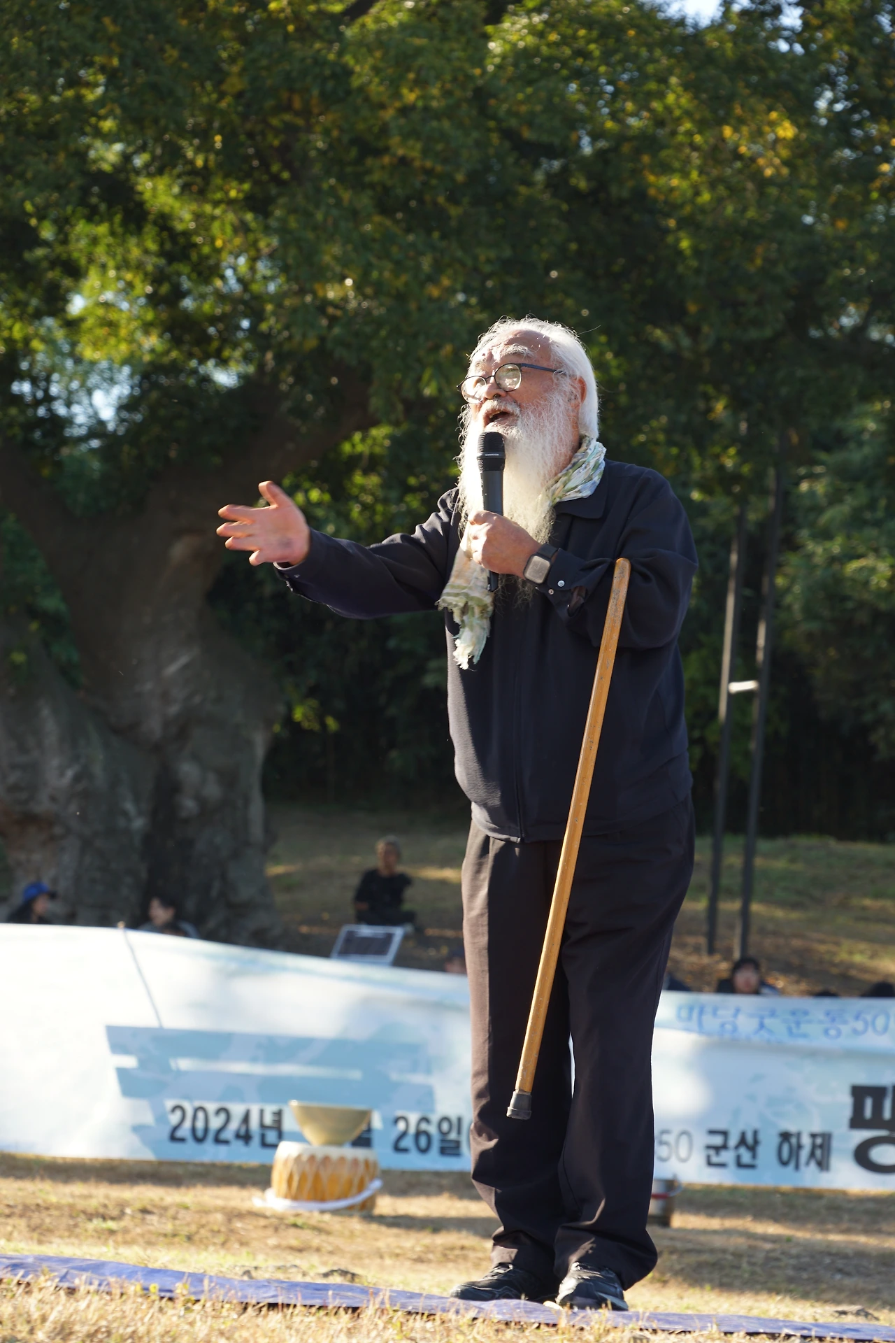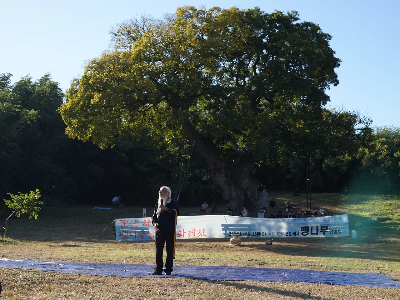 내가 제주도(강정마을)에서 만 13년을 살았어요. 여기 군산에 머물러서 팽나무가 지켜질 수 있기를 간절히 바라고, 여러분이 이렇게 와 주셔서 고마운 마음 금할 수가 없습니다.”