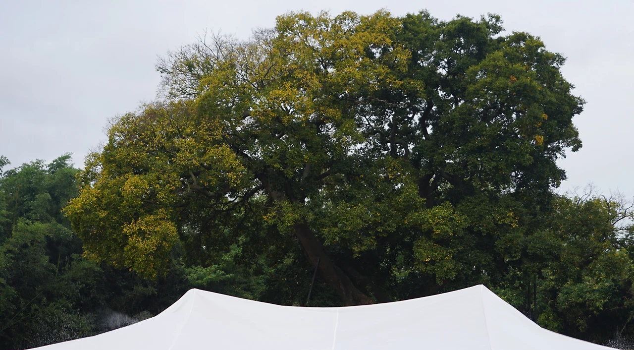 “안녕하세요? 문정현입니다. 여기만 오면 등골에 철사가 올라와요. 그래서 꼼짝을 못 해요. 풀어질 때까지. 여기만 오면 화가 나는데. 1997년부터 미군기지 싸움을 시작해서 SOFA라는 걸 알고 전국구 싸움을 했는데, 97년 이후 안쪽으로 바깥쪽으로 엄청나게 확장됐습니다. 그런데 다행히 600년 된 할머니인지 할아버지인지 팽나무가…, (처음엔) 있는지 몰랐습니다. 왜냐면 동네 한가운데 있었기 때문에. 그런데 국방부가 (마을을) 수용하고 나서 새벽에 왔는데 팽나무가 호통을 치셨습니다.