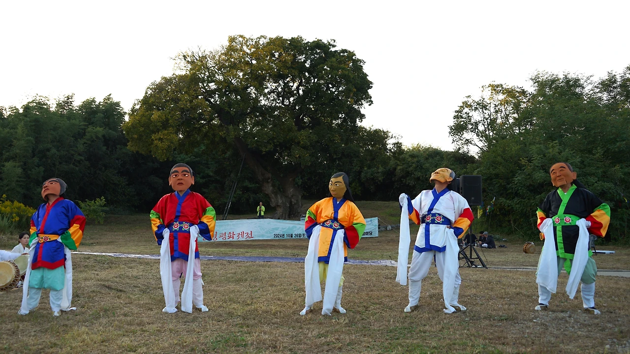 팽팽문화제의 정의를 그 이상 정확히 설명할 수 없는 말씀이었다. 축제에는 춤과 노래와 풍물이 빠질 수 없다. 새천년 학춤(동래학춤 군무)과 겨레의 노래와 남자현 초망자 굿이 이어졌다. 초망자 굿은 만주지역 독립운동의 어머니로 세 차례나 손가락을 끊어 그 피로 조선독립을 호소한 여성독립운동가 남자현 열사 현신 굿이었다.