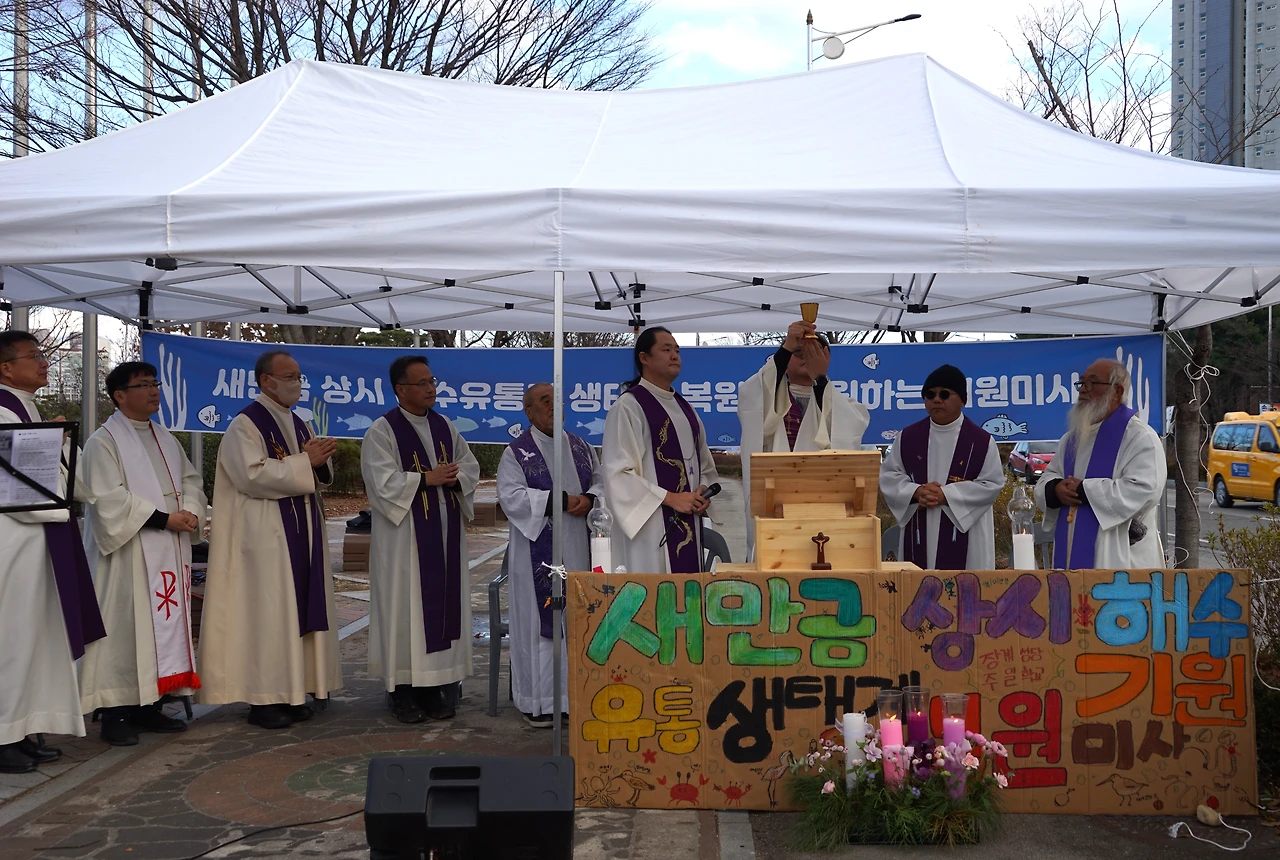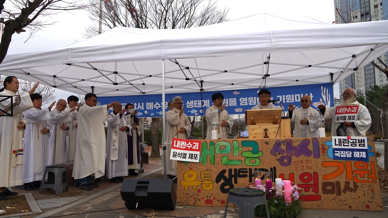 이날은 새만금 상시 해수유통과 생태계 복원을 위한 미사라기보다는 윤석열 퇴진·탄핵 촉구 시국 미사였다.