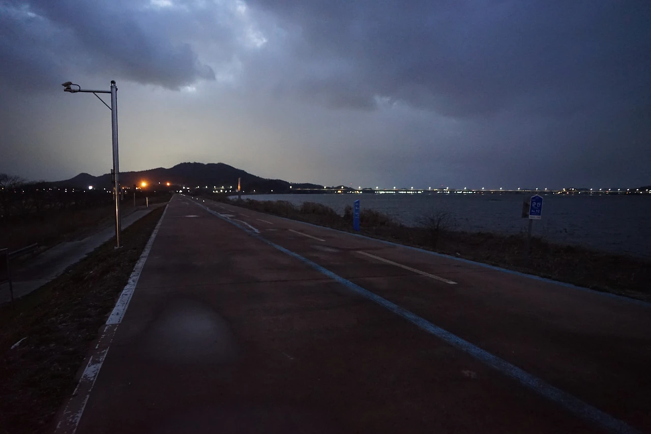 뛰지 않고 재바르게 걸었다. 왼쪽 강과 오른쪽 농지가 낮았다. 사이를 돋아 강둑 맨 위에 자전거 길을 낸 것이 새만금 시공방식과 동일했다. 강 따라 쌓은 둑은 괜찮을지 몰라도 바다를 막은 방조제는 맨 꼭대기에 길을 만들면 안 된다고 어디서 본 기억이 났다.