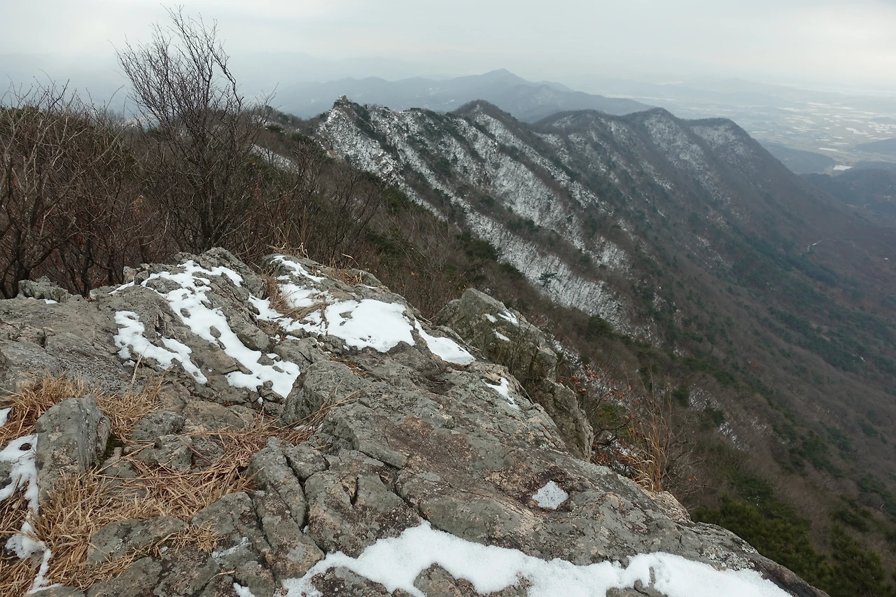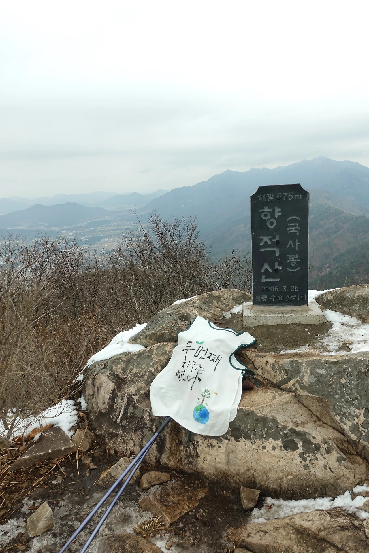 눈 쌓인 산을 올라 낙엽 쌓인 산으로 내려왔다.