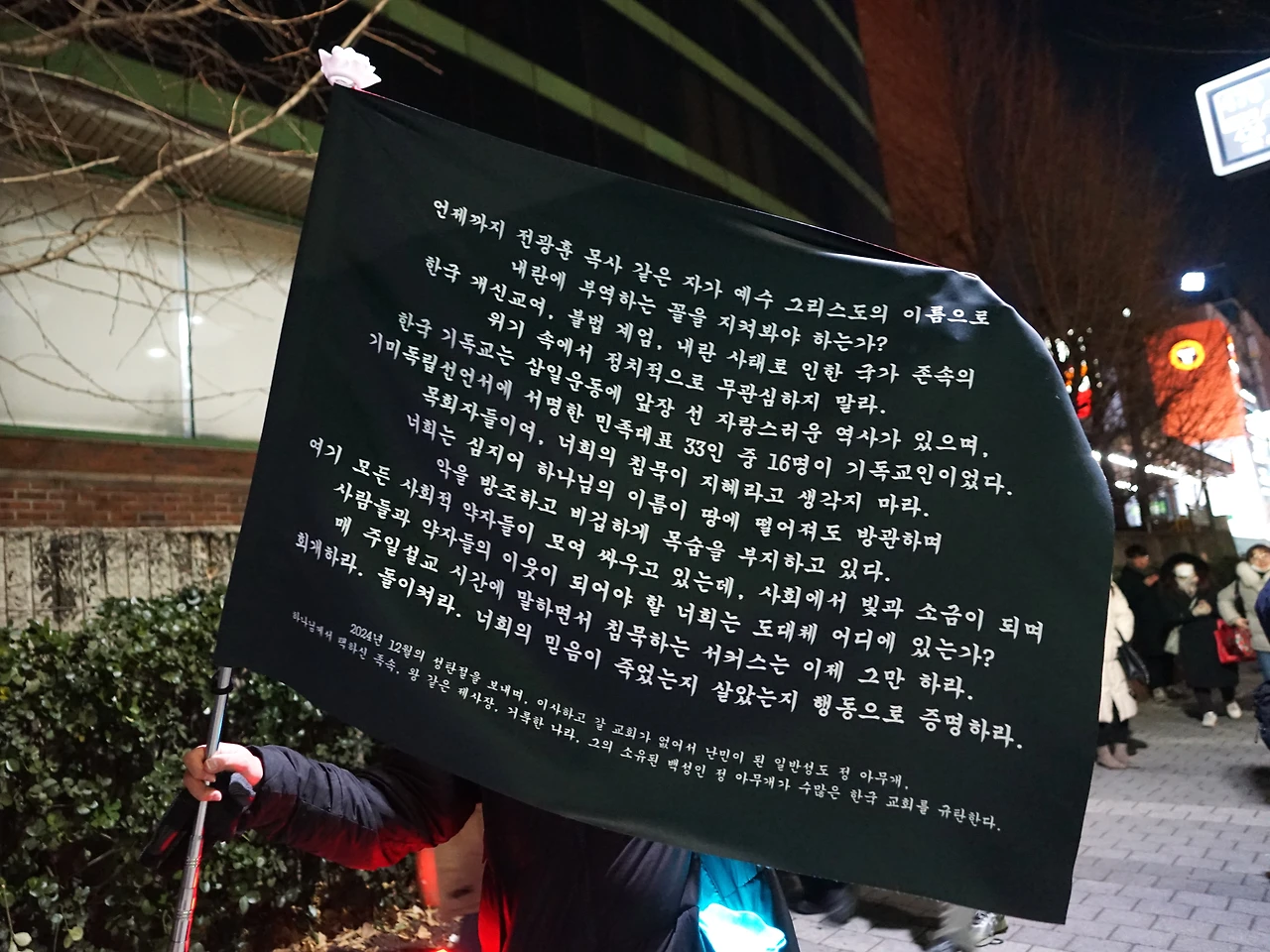 엄동설한에 피켓과 깃발과 응원봉을 들고 나온 사람들과 찐 고구마와 차를 가지고 나와 무료로 나눠주는 사람들. 그들이 착한 사람들인지는 모르겠지만 선한 사람들임에는 틀림없다. 적어도 불의에 침묵하지 않고 행동으로 보여주는 이들이니까.