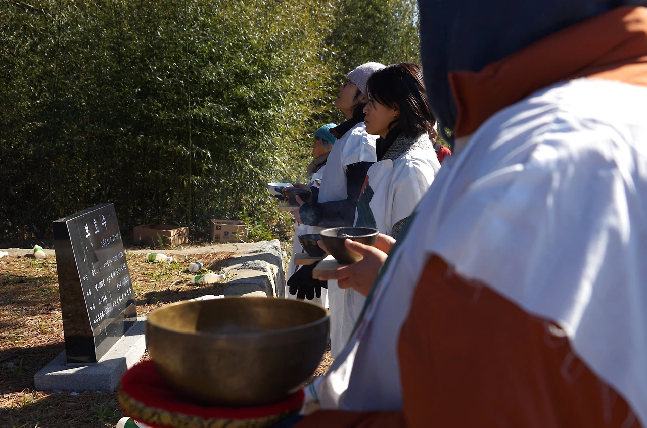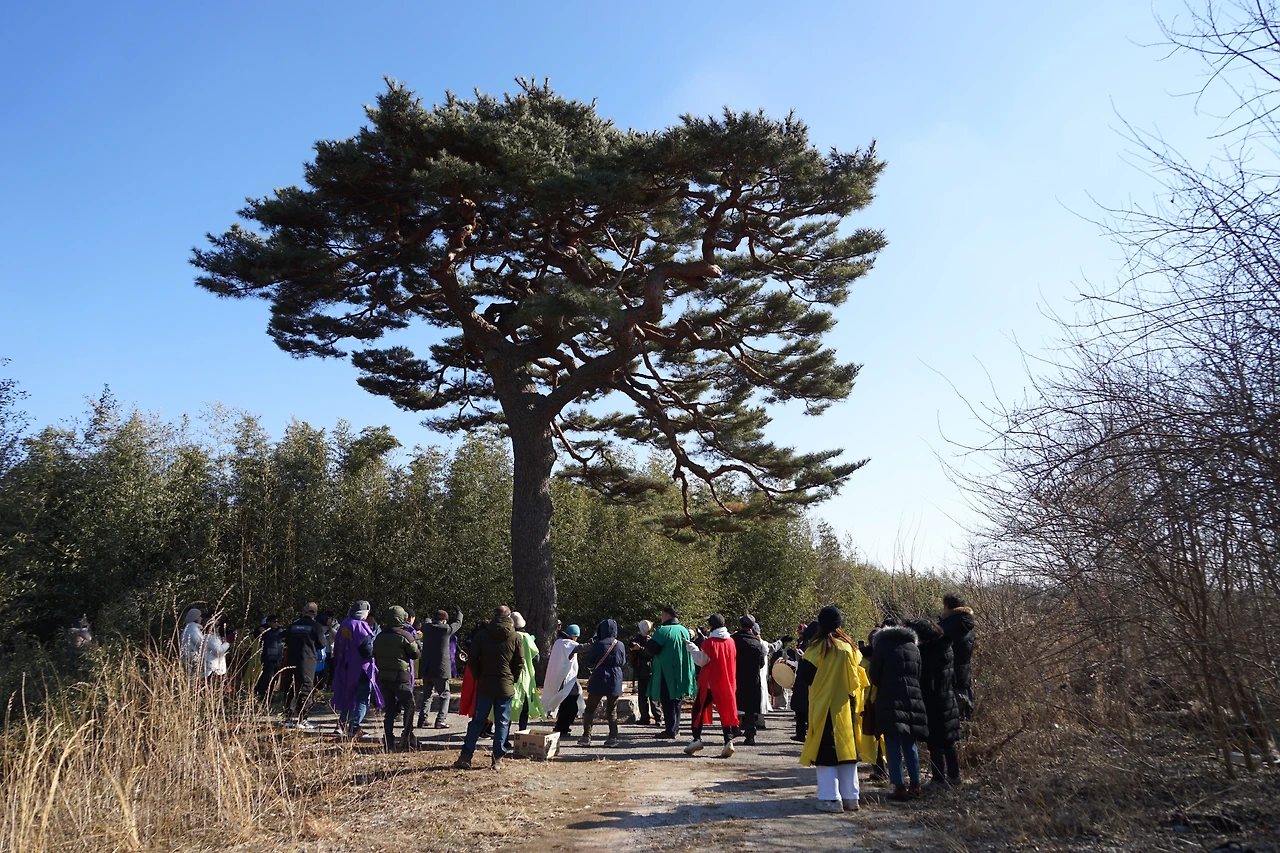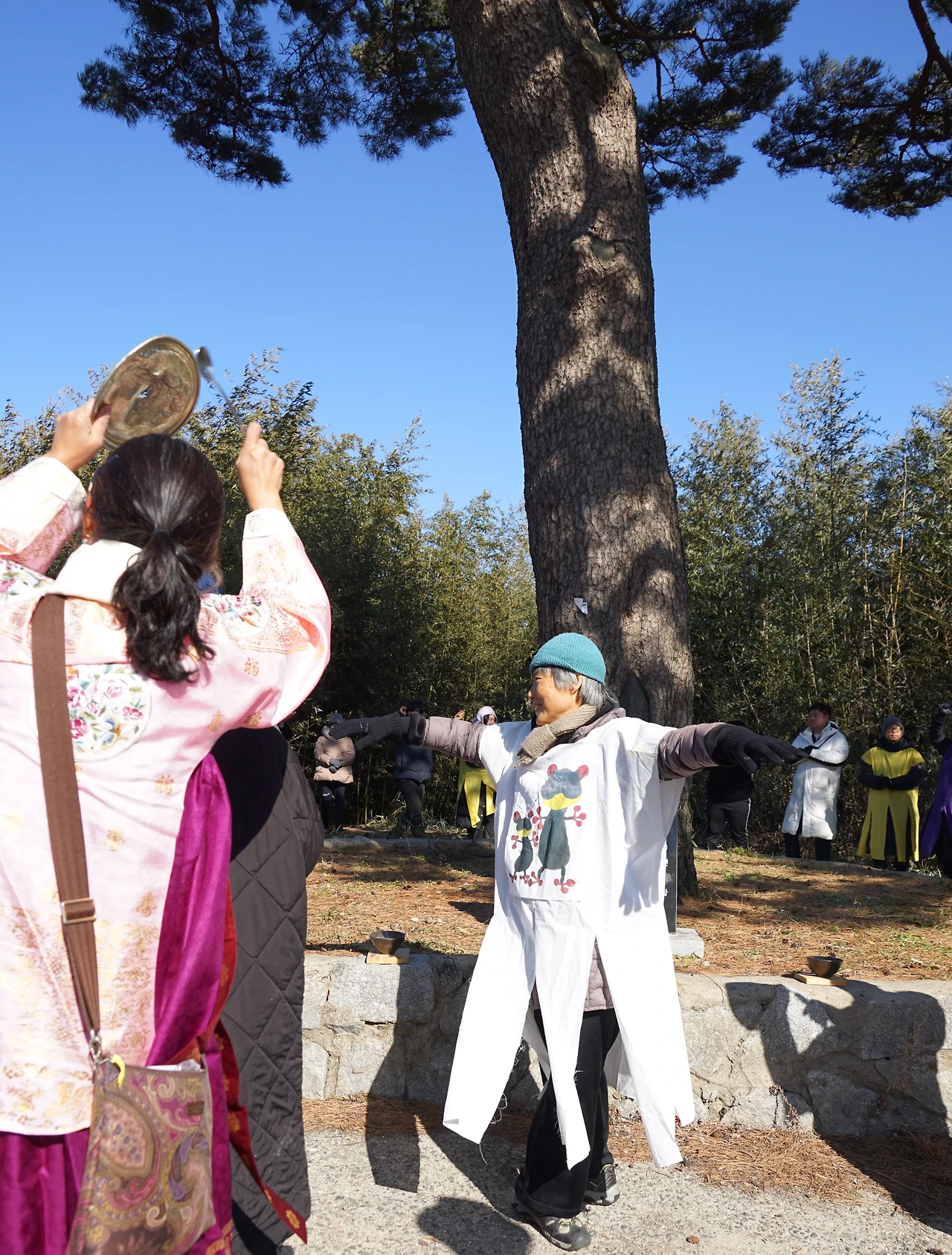 도깨비굿 하애정 풍물패를 따라 대숲 속으로 들어갔다. 우뚝 선 소나무가 있었다. 300년 된 보호수였다. 사람들이 소나무를 둘러 춤을 추고 노래하며 막걸리를 뿌렸다. 우리가 신명 나게 놀수록 소나무가 좋아한다고 했다.
