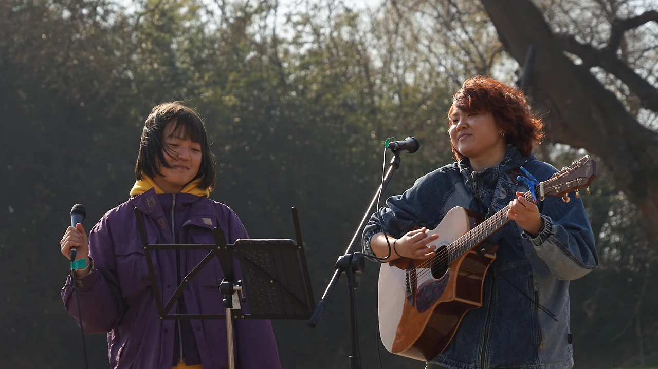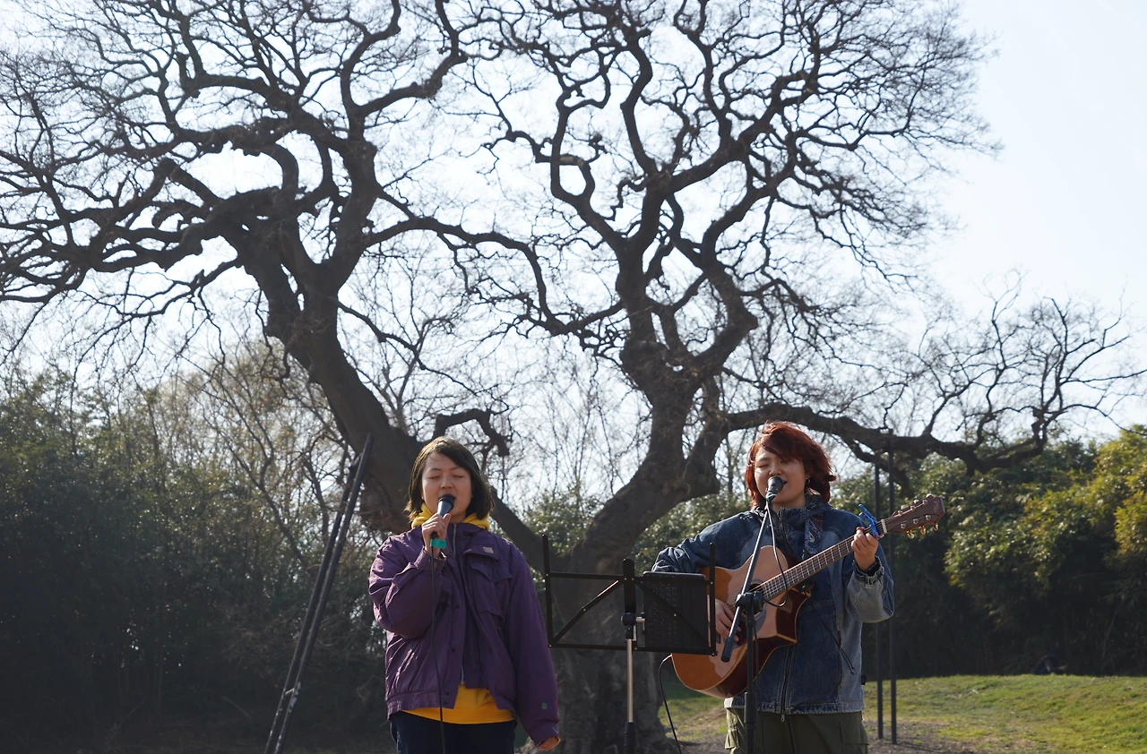 이후 제주도 강정에서 매일 12시에 인간띠 잇기와 깃발 행진을 하며 ‘함께하는 것의 힘을 노래‘하던 모레도 토요일이 한 달 전에 육지로 나와 ‘모르는’ 외 팽나무와 평화바람을 노래했다. 두 번째 팽팽문화제에 왔을 때 사람들이 커다란 나무 밑에서 춤추는 모습, 나무를 지키는 사람들, 마을을 지키는 나무를 보고 만든 노래라고 했다. 뿌연 미세먼지에 부서지는 햇살이 팽나무를 등진 두 뮤지션을 감쌌다. 여태 들었던 그 어떤 노래보다 맑고 싱그러웠다.