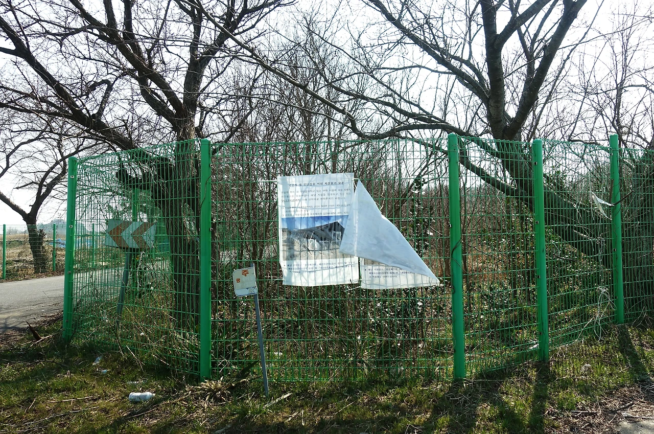 “하제마을 입구에 마지막으로 남아있던 집이 행정대집행이 진행돼서 주변 김 공장이랑 다 허물어졌습니다. 그 후 2주쯤 지나 어떤 분이 제보를 해주셨어요. 팽나무 주변에는 펜스가 쳐있고 입구에 문만 잠그면 못 들어오는데, 그 문을 잠근다는 소식이 들려왔어요.