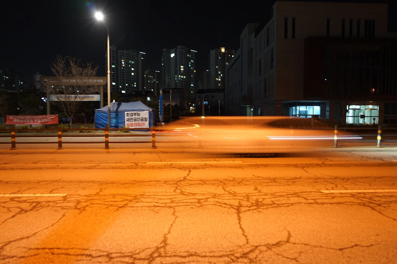 아침 8시부터 9시까지 출근하는 사람들에게 피켓을 들어 보이며 새만금 신공항 부지 환경영향평가에 부동의 해야 함을 알렸다. 피케팅을 하며 도로를 유심히 보니 차선마다 금이 가 있었다. 밤새 맹렬히 달리는 차들의 무게를 아스팔트가 감당하지 못하는 모양이었다.