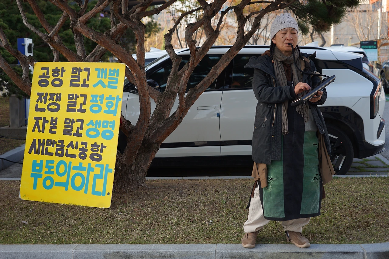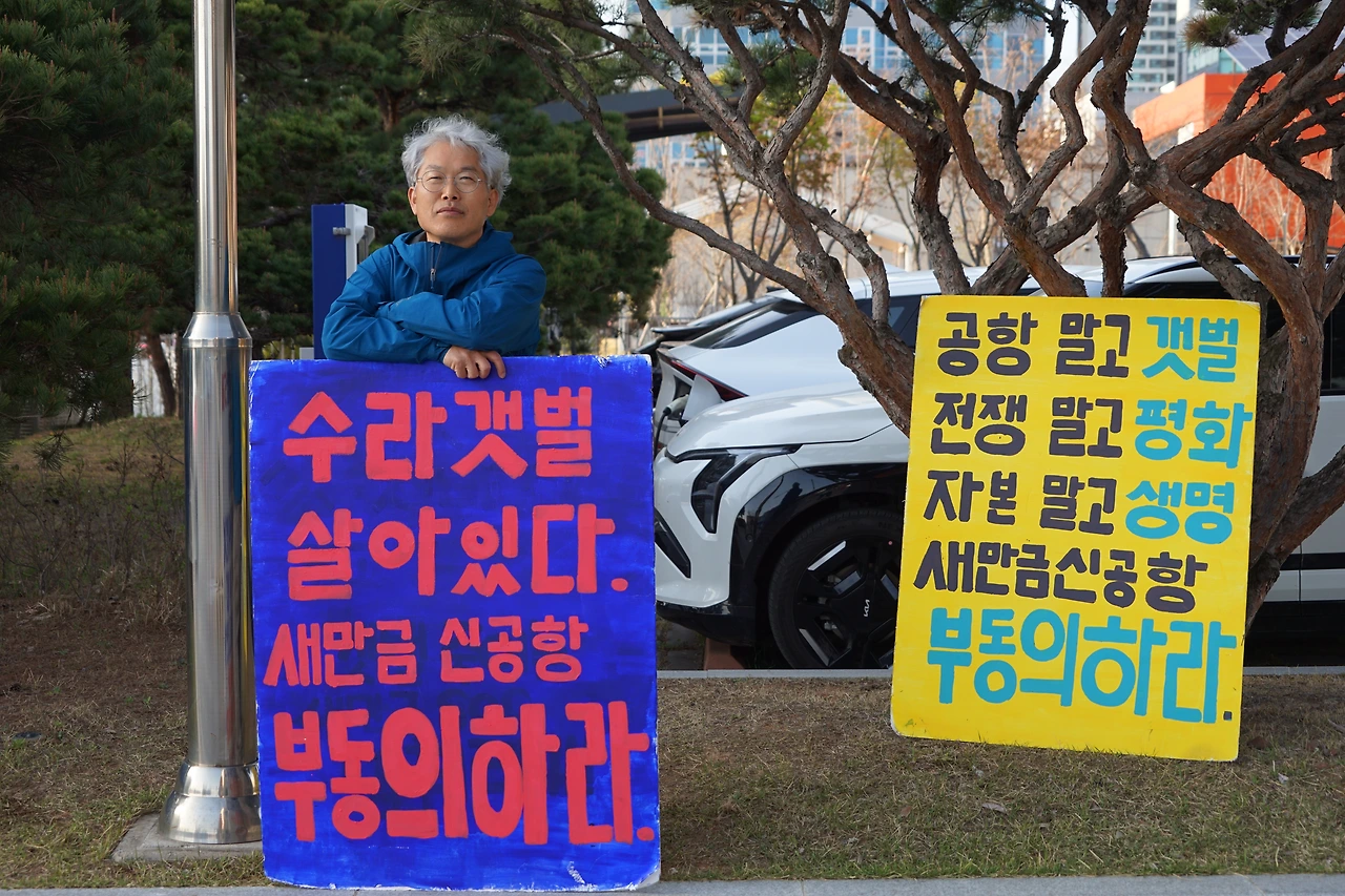 새만금 국제공항 기본계획에 대한 환경영향평가서가 현재 전북지방환경청에서 검토 중에 있다고 합니다. 환경영향평가에 환경청이 ‘동의’ 의견을 낸다면 새만금 국제공항은 일사천리 진행될 것입니다. 무안공항의 제주항공 참사를 겪고도 조류충돌 참사가 예상되는 새만금 국제공항을 막아내지 못한다면 이 부끄러움을 어찌할까요. 수라 갯벌을 쓸어버리고 미군기지를 확장하는 새만금 국제공항이라는 이 사기를 막아내지 못한다면 이 억울함을 어찌할까요. 저는 이 상황을 보고만 있을 수 없어 전북지방환경청 앞 천막 농성에 함께 합니다.